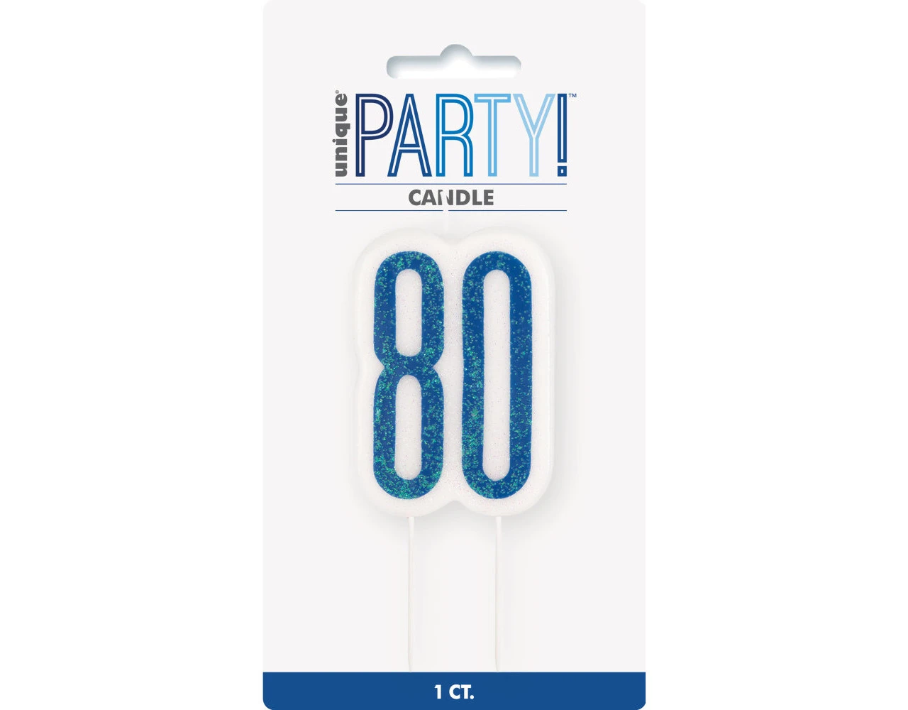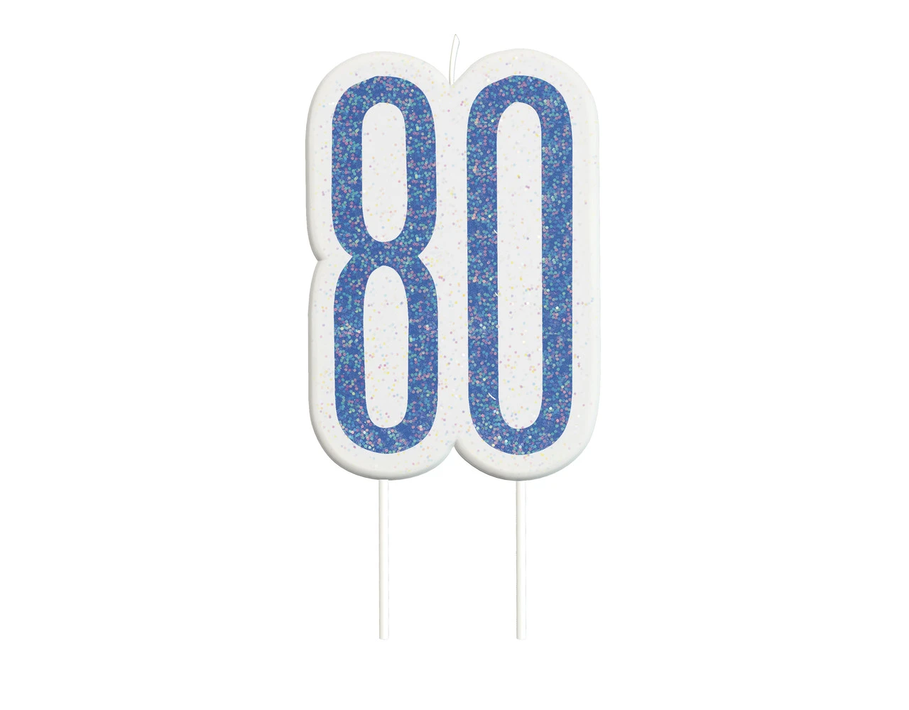 Verpakkingsinhoud: Kaars 80 Jaar Glitter Blauw 8,5cm