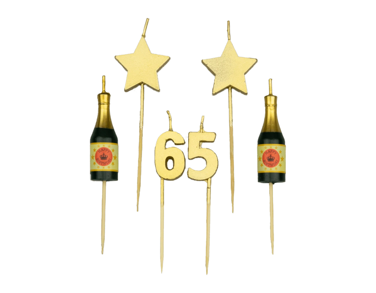 Verpakkingsinhoud: Party cakekaarsen – 65 jaar
