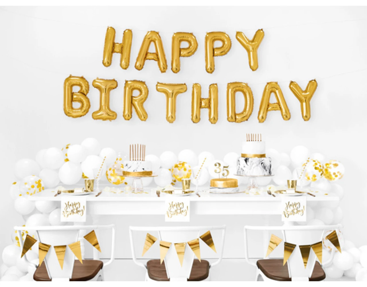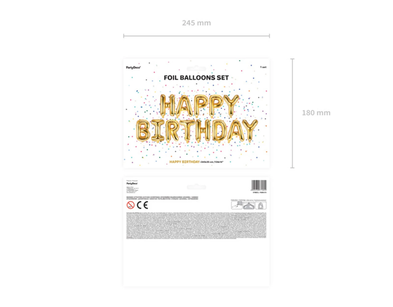 Letterballon Set Happy Birthday Goud Leeg 3,4m