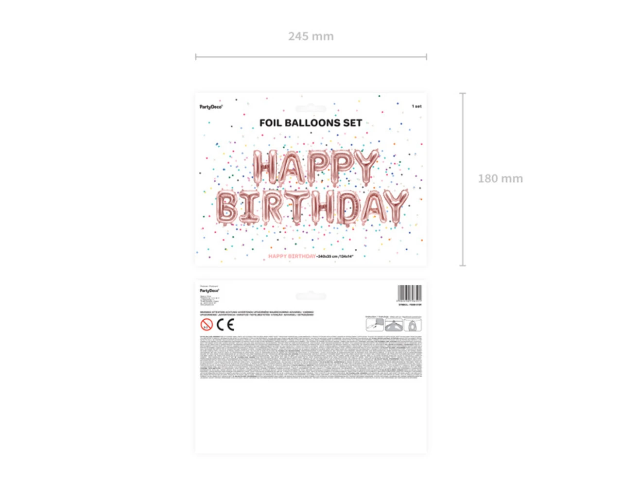 Letterballon Set Happy Birthday Rose Goud Leeg 3,4m