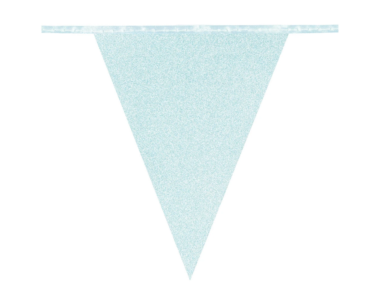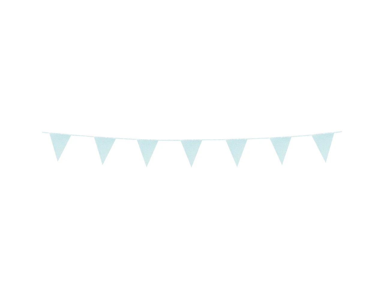 Kartonnen glittervlaggenlijn lichtblauw 20 x 16cm 6 m