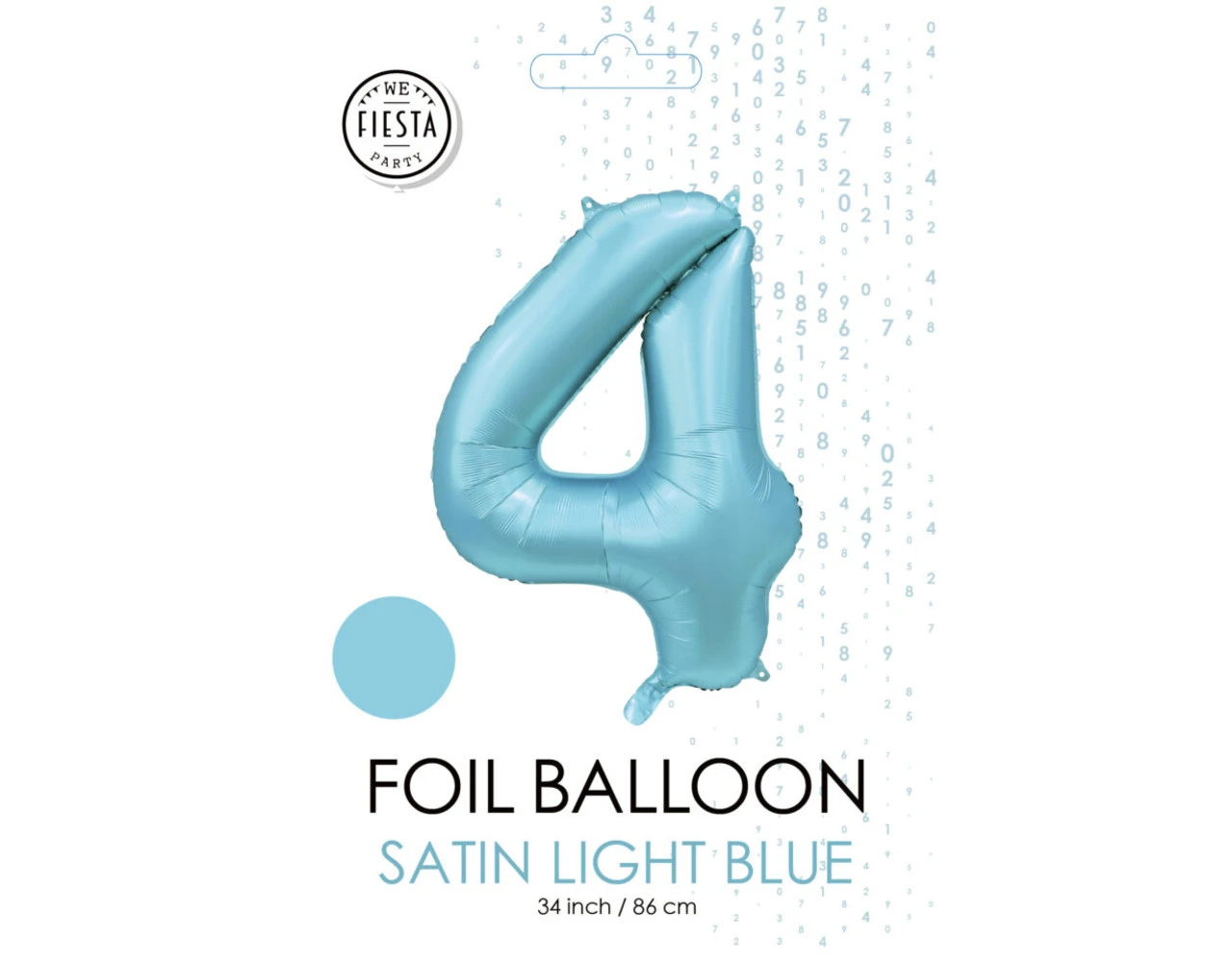 Lichtblauwe Cijfer Ballon 4 Jaar Glans 86cm