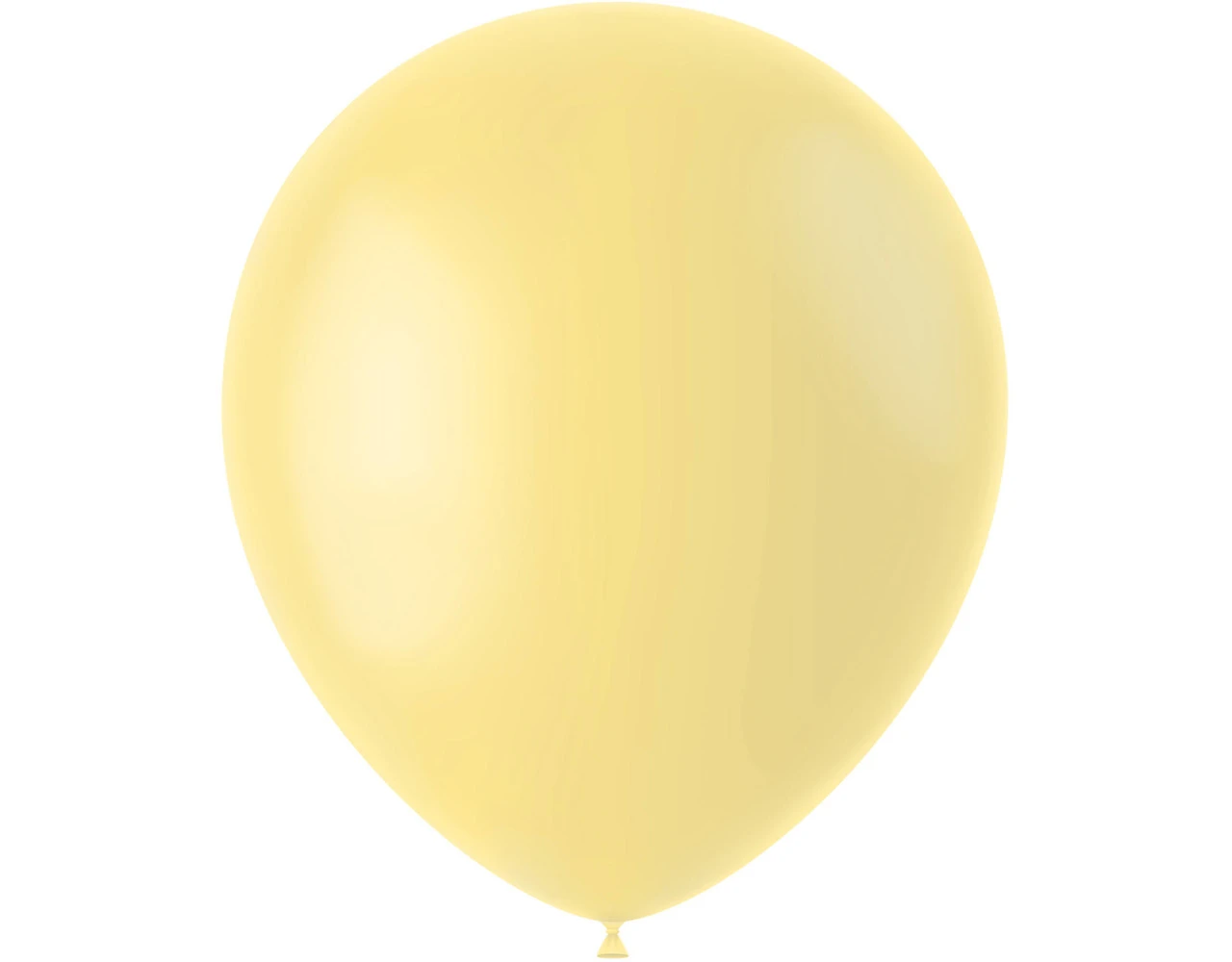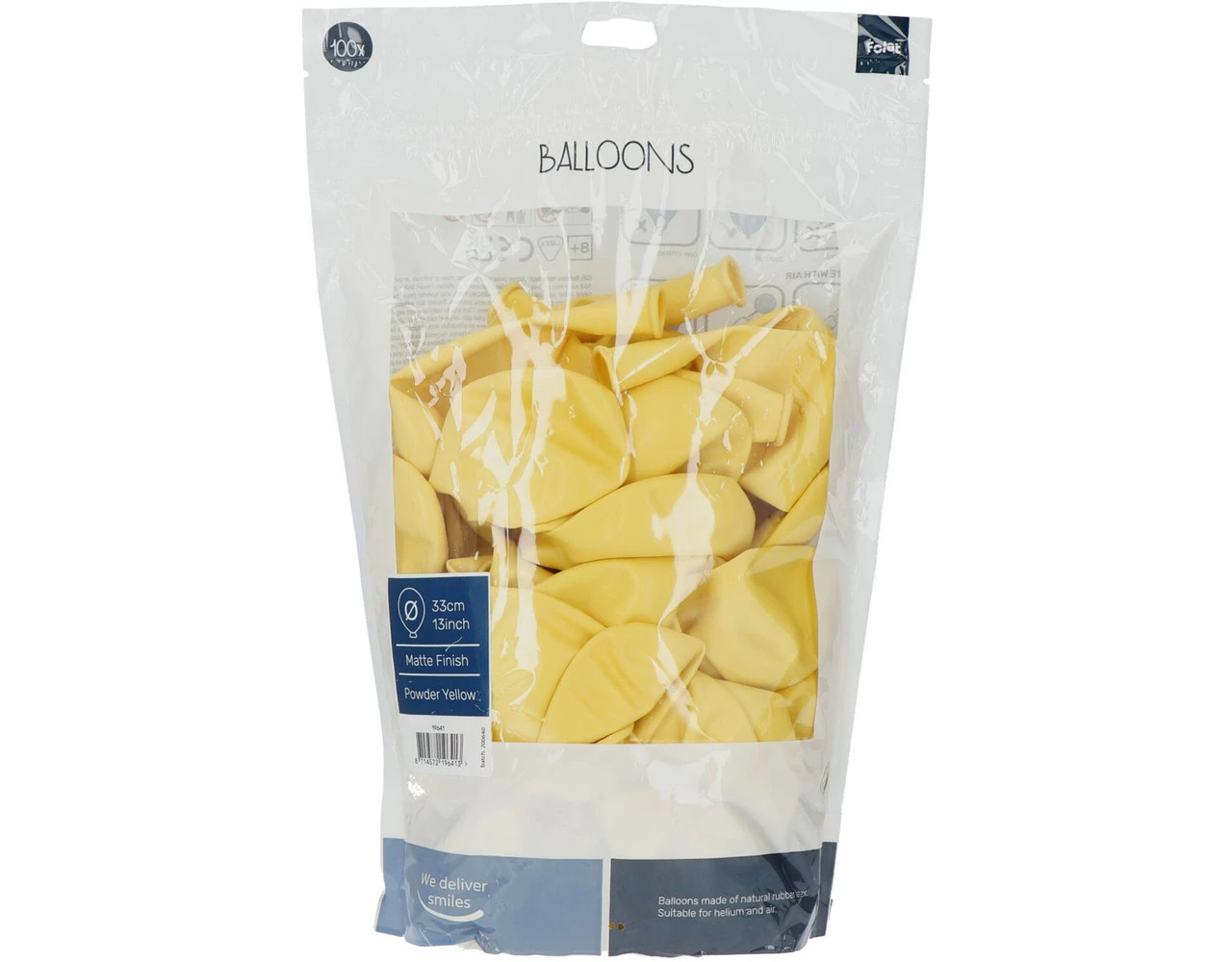 Ballonnen Powder Yellow Mat 33cm – 100 stuks. Inhoud: 100 latex ballonnen. Kleur: Geel. Bijvoorbeeld te gebruiken tijdens de volgende feestgelegenheid/feestgelegenheden: Verjaardag, Kinderfeestje en Themafeest. Elke ballon is 13 inch/33 cm. Het artikel is gemaakt van latex.