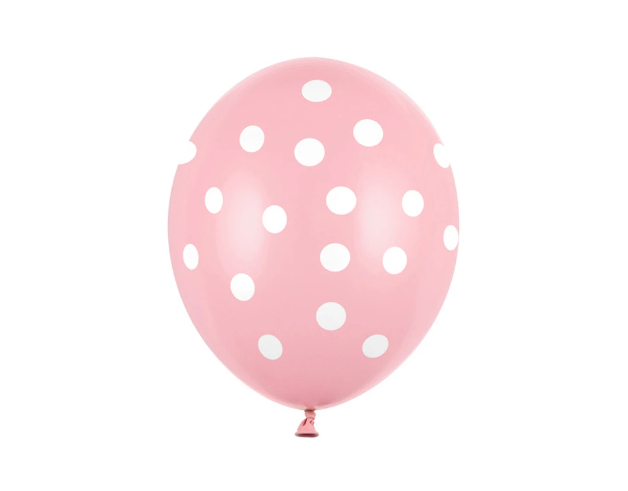 Sterke Ballonnen Dots, Pastel Baby Roze met wit, vijfzijdige opdruk, diameter 30 centimeter.