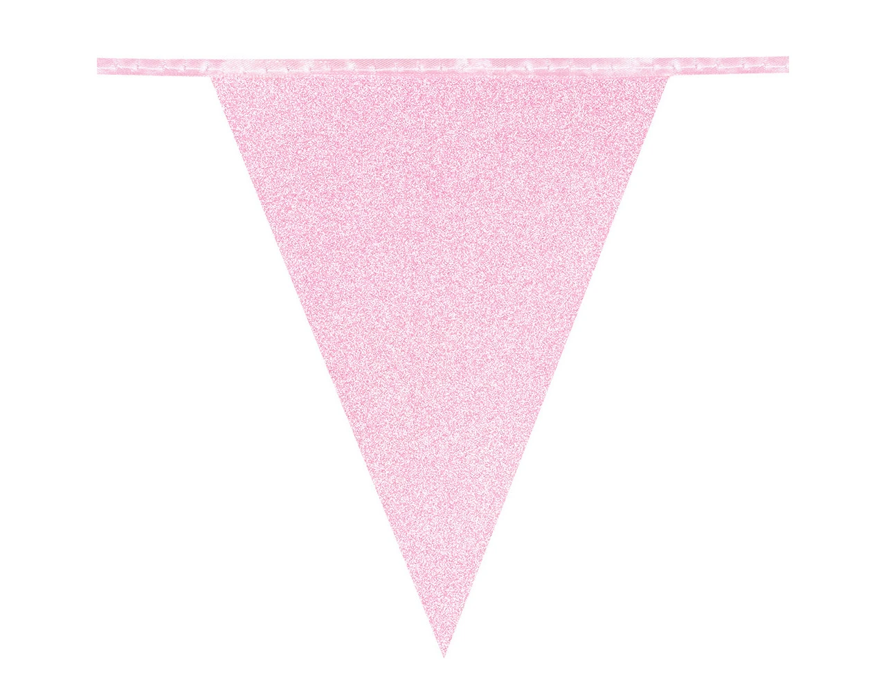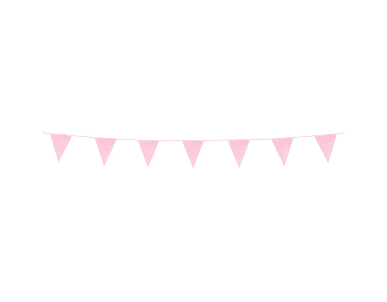 Kartonnen glittervlaggenlijn lichtroze 20 x 16cm 6 m