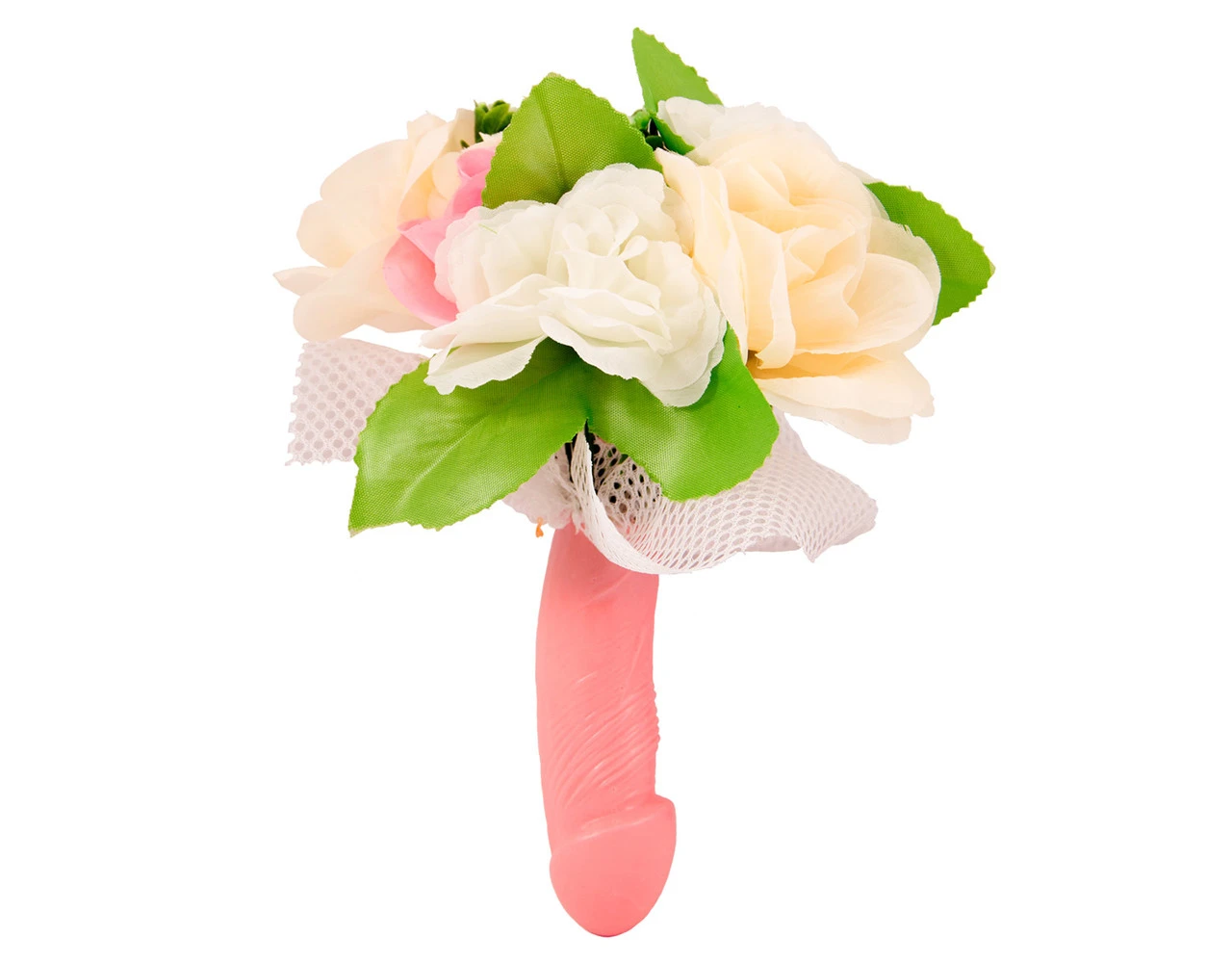 Penis Trouwboeket Vrijgezellenfeest. Inhoud: 1 boeket. Bijvoorbeeld te gebruiken tijdens de volgende feestgelegenheid/feestgelegenheden: Vrijgezellenfeest. Afmetingen van dit artikel: 21 x 15 cm. Het artikel is gemaakt van plastic.