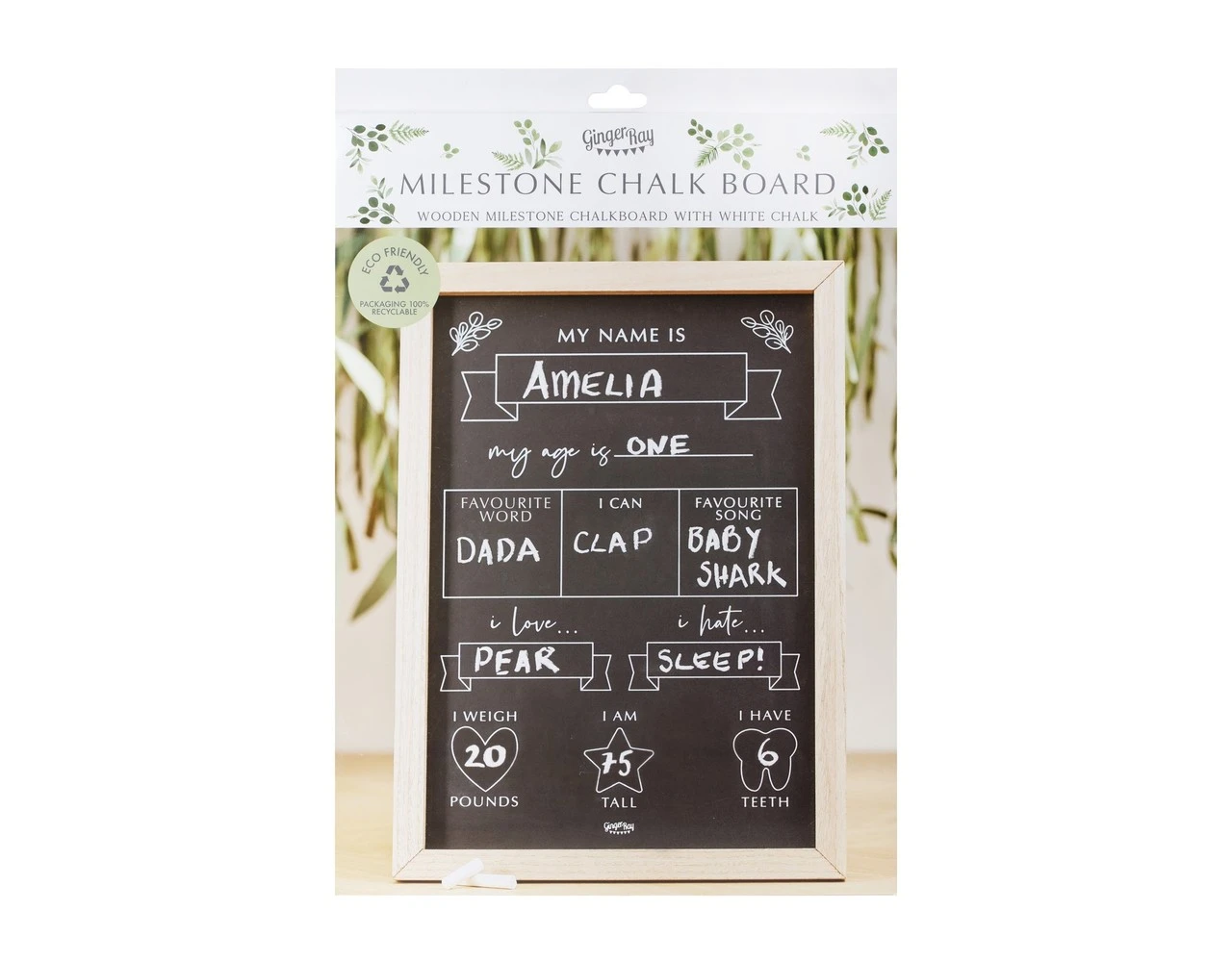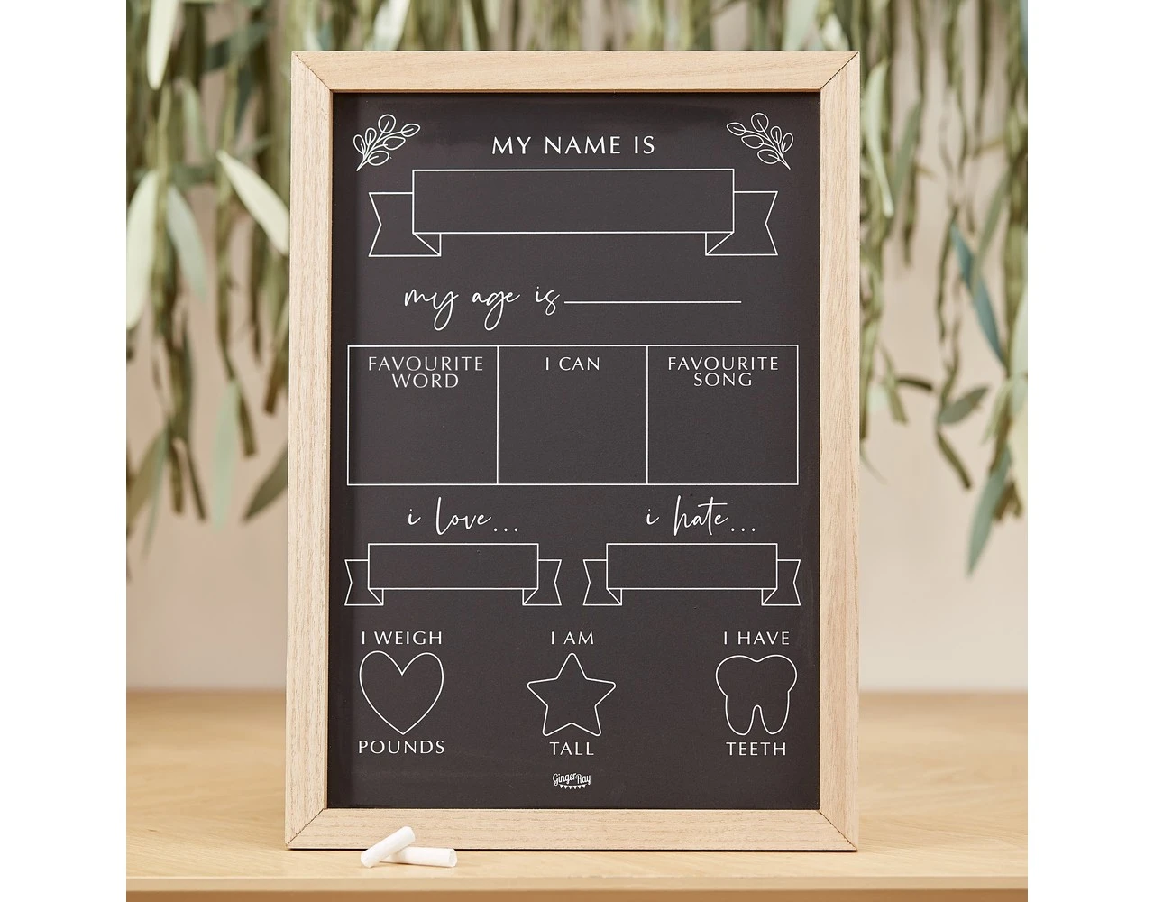 Houd de ontwikkeling van uw nieuwkomers bij met dit krijtbord voor het bijhouden van mijlpalen voor baby’s. Maak elke maand een foto van je kleintje met dit bord en zie hoe snel ze groeien!