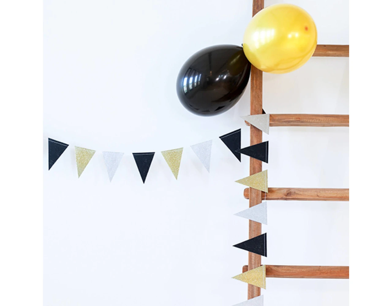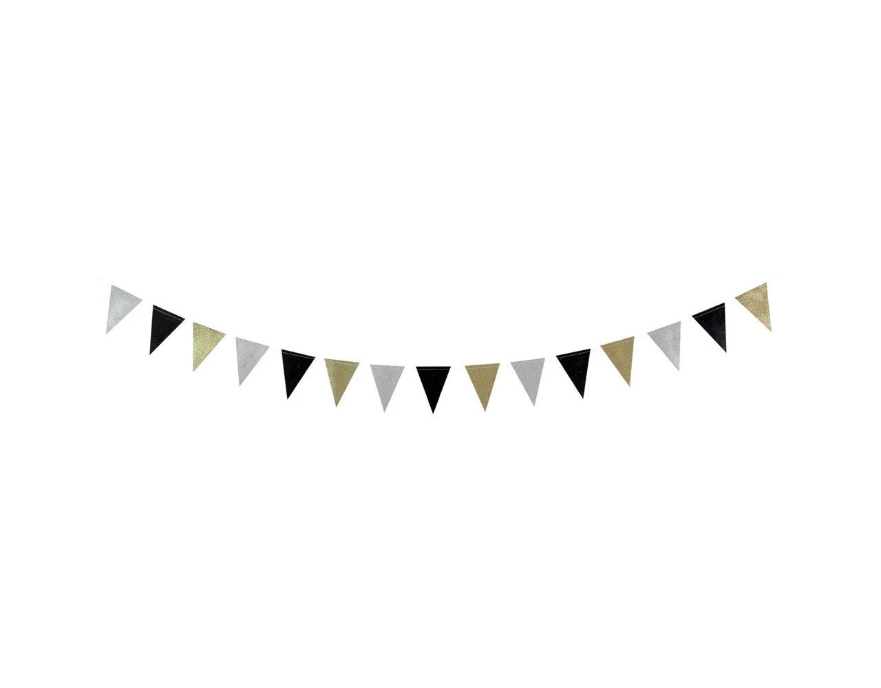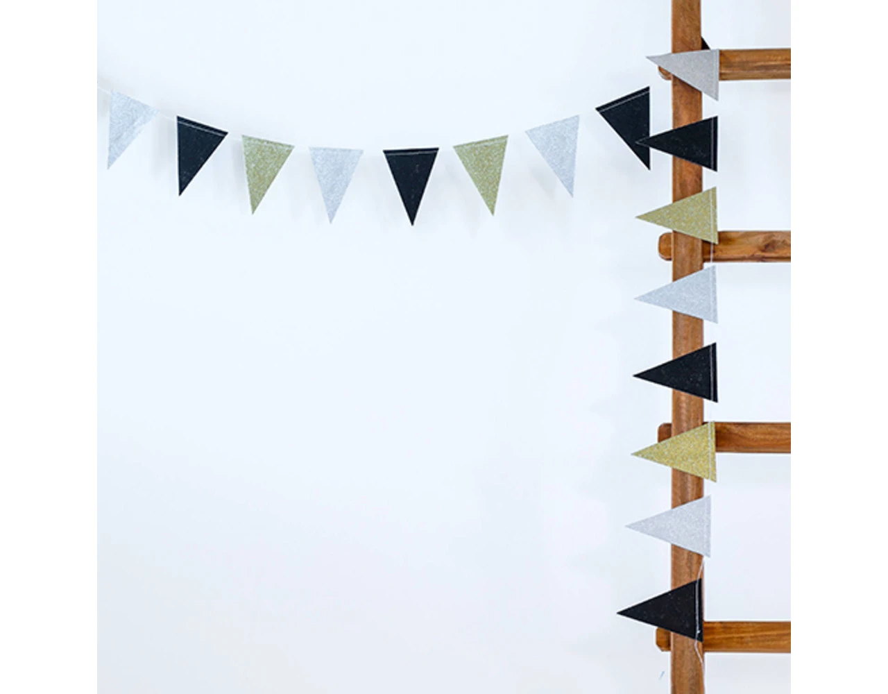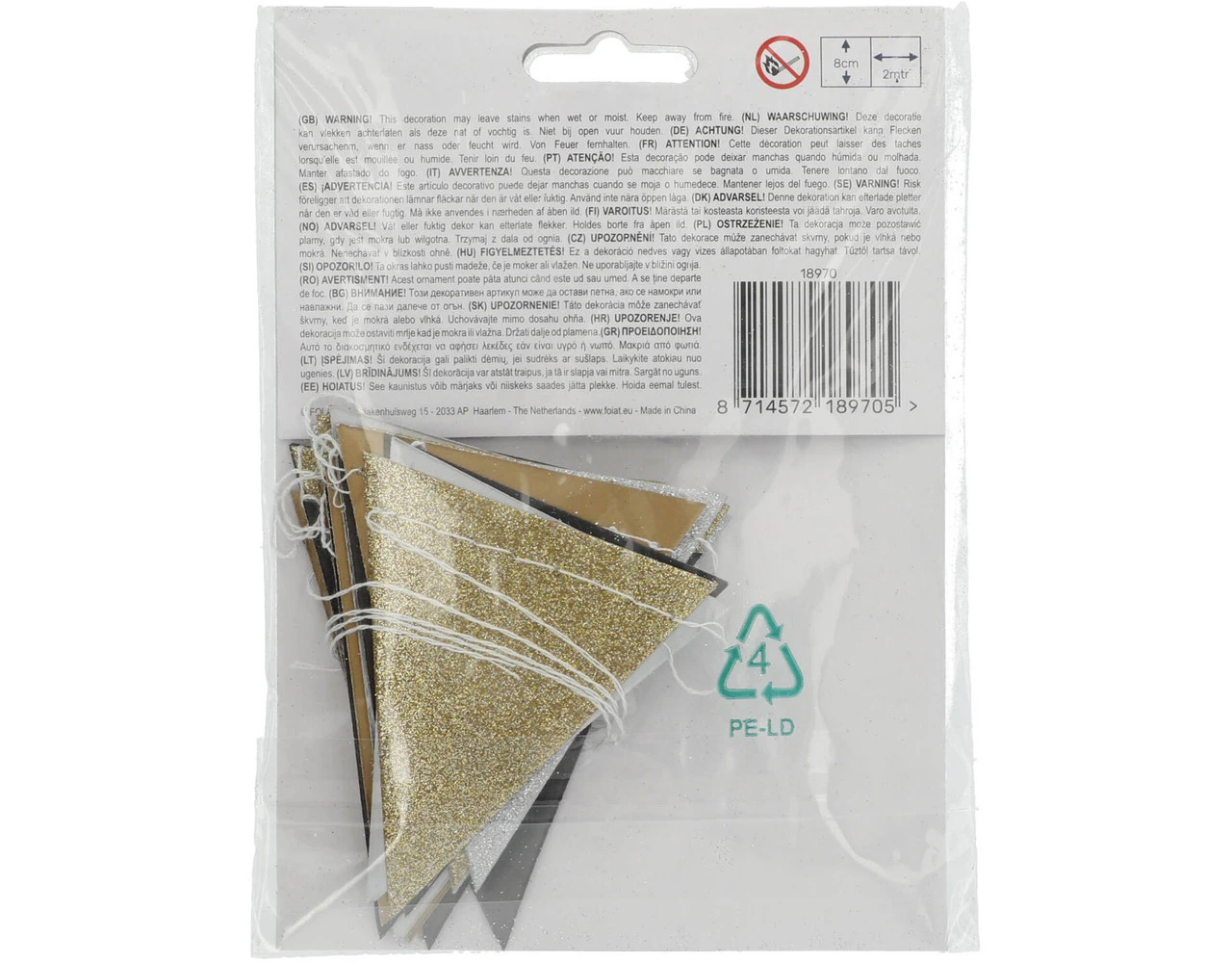 Mini Vlaggenlijn Glitter Electrum – 2,6 meter. Inhoud: 1 mini slinger. Kleur: Meerkleurig. Bijvoorbeeld te gebruiken tijdens de volgende feestgelegenheid/feestgelegenheden: Verjaardag, Kinderfeestje en Jubileum. Deze slinger is 2,6 meter lang, waarvan 2 meter met vlaggen. Er zitten 24 vlaggetjes van 7×8 cm aan. Het artikel is gemaakt van papier.