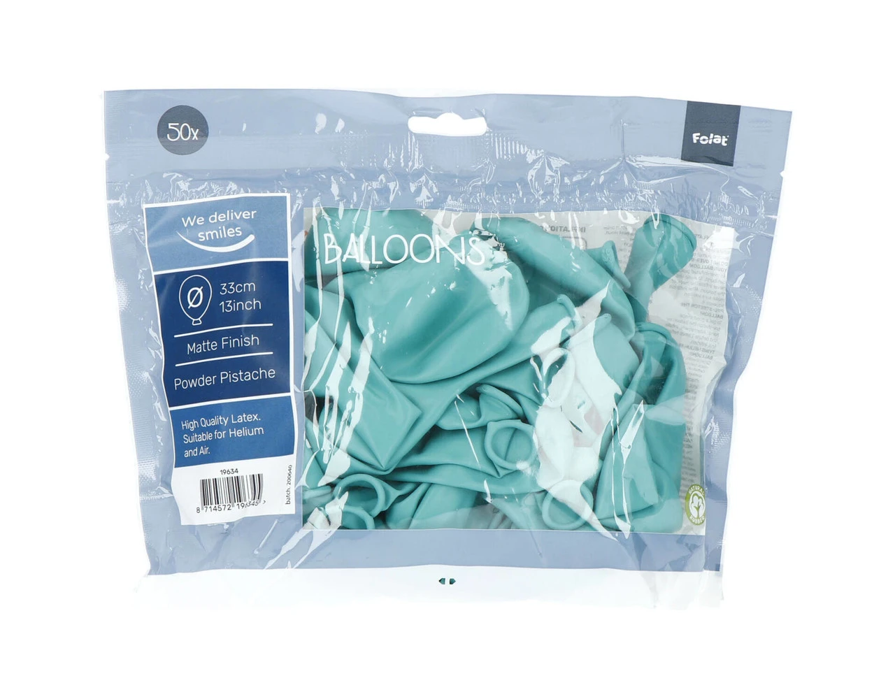 Ballonnen Powder Pistache Mat 33cm – 50 stuks. Inhoud: 50 latex ballonnen. Kleur: Groen. Bijvoorbeeld te gebruiken tijdens de volgende feestgelegenheid/feestgelegenheden: Verjaardag, Kinderfeestje en Themafeest. Elke ballon is 13 inch/33 cm. Het artikel is gemaakt van latex.