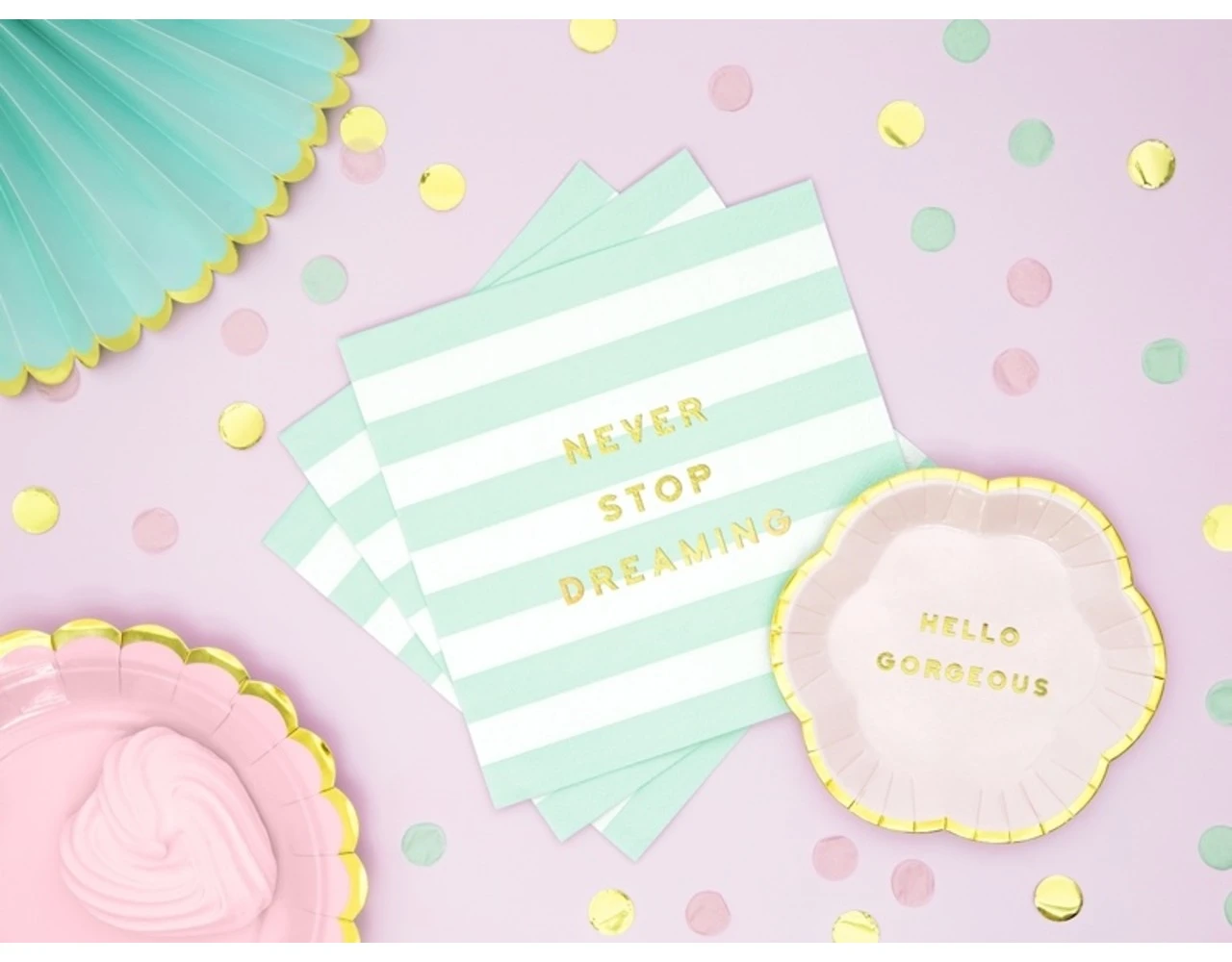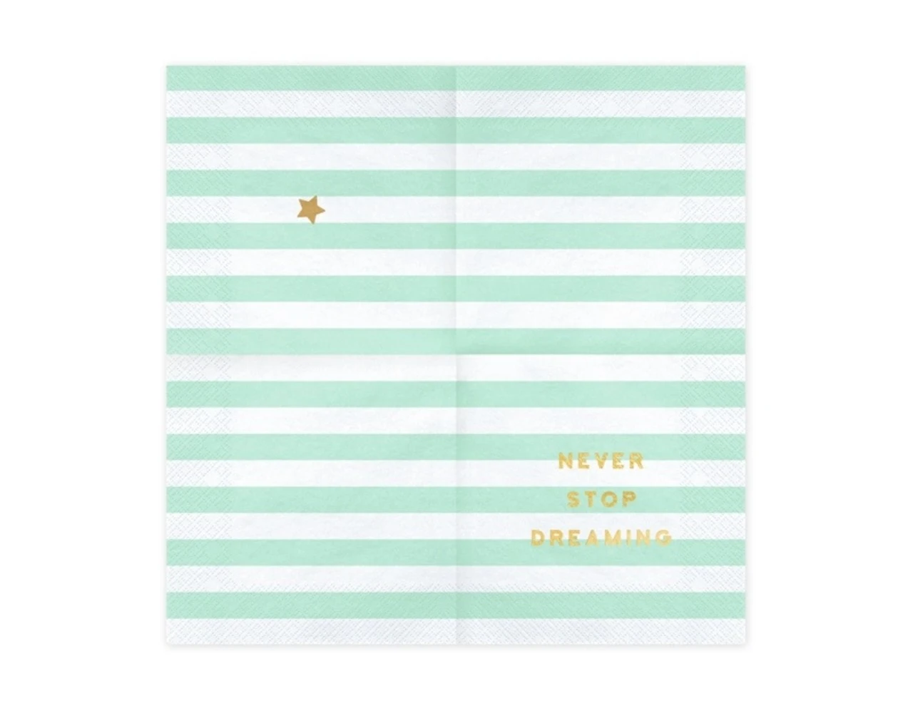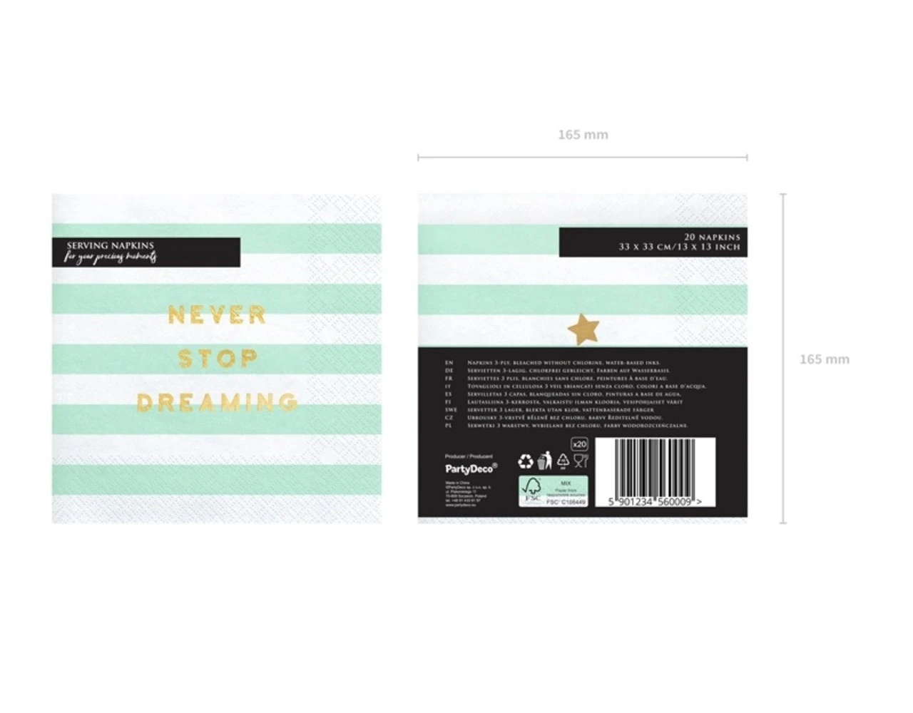 Verpakkingsinhoud: Mintgroene Servetten Never Stop Dreaming 33cm 20st
