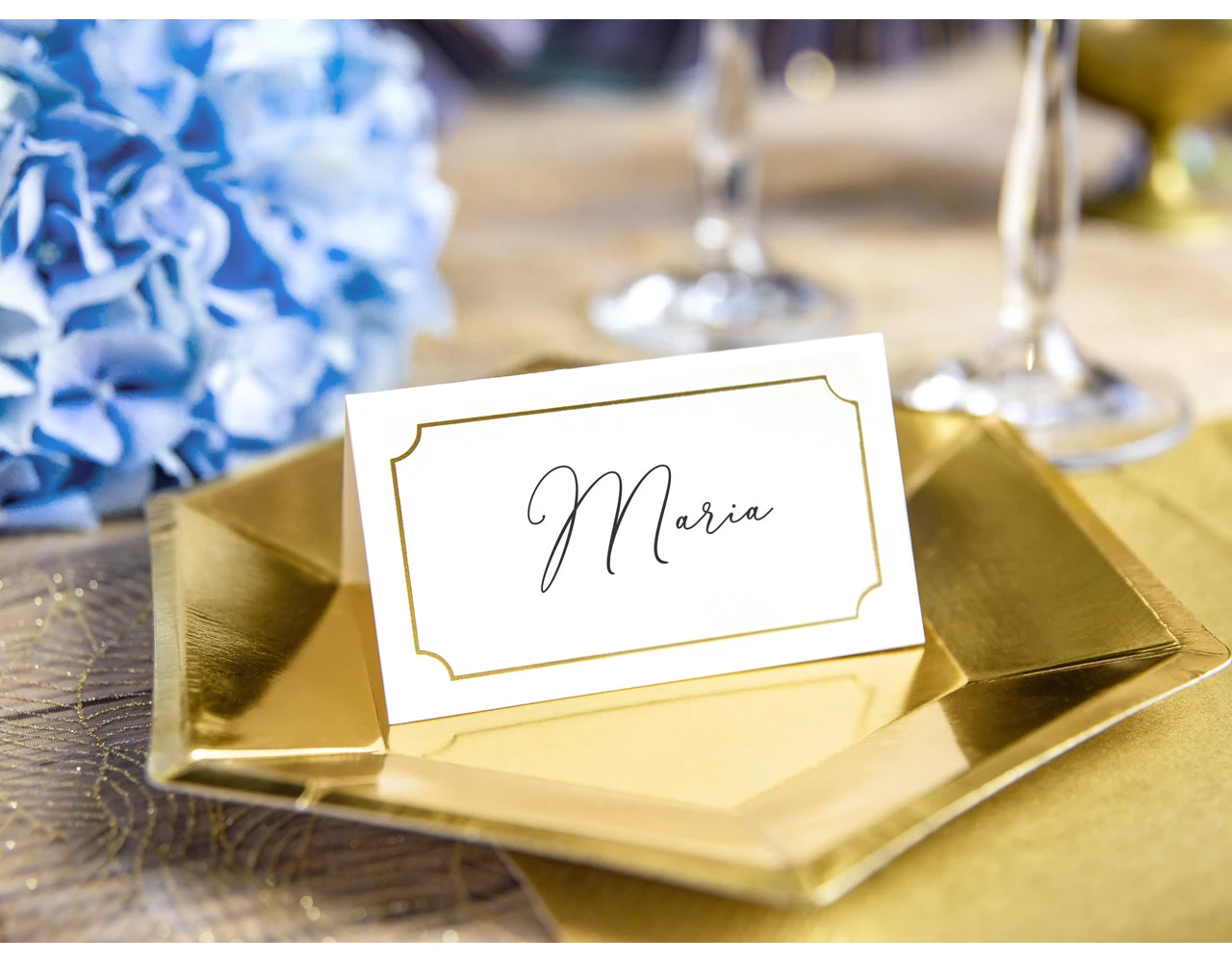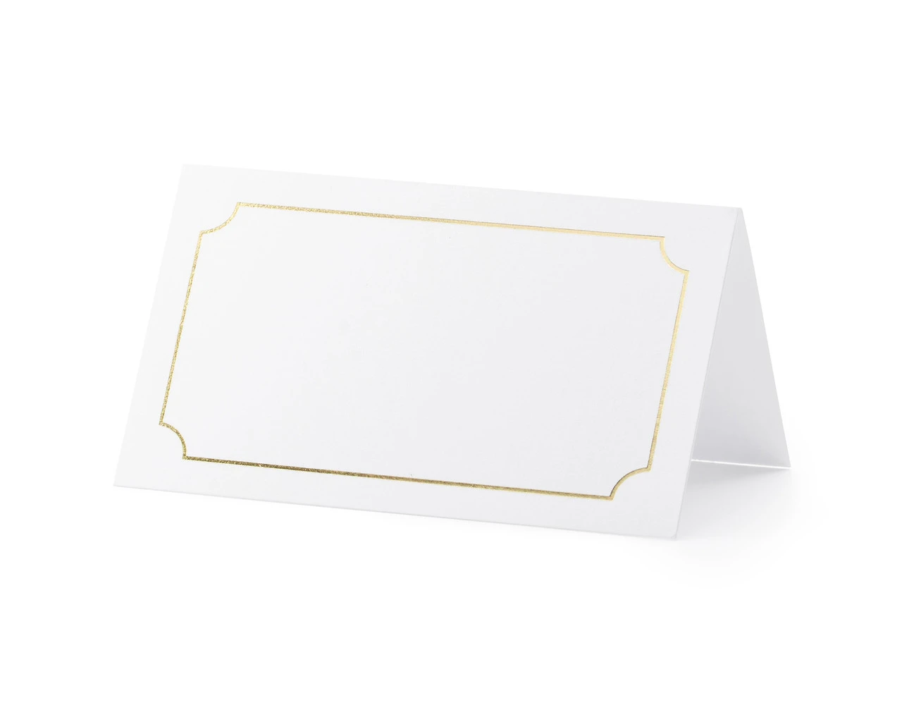 Verpakkingsinhoud: Naamkaartjes Wit Goud Lijst 9,5cm 10st