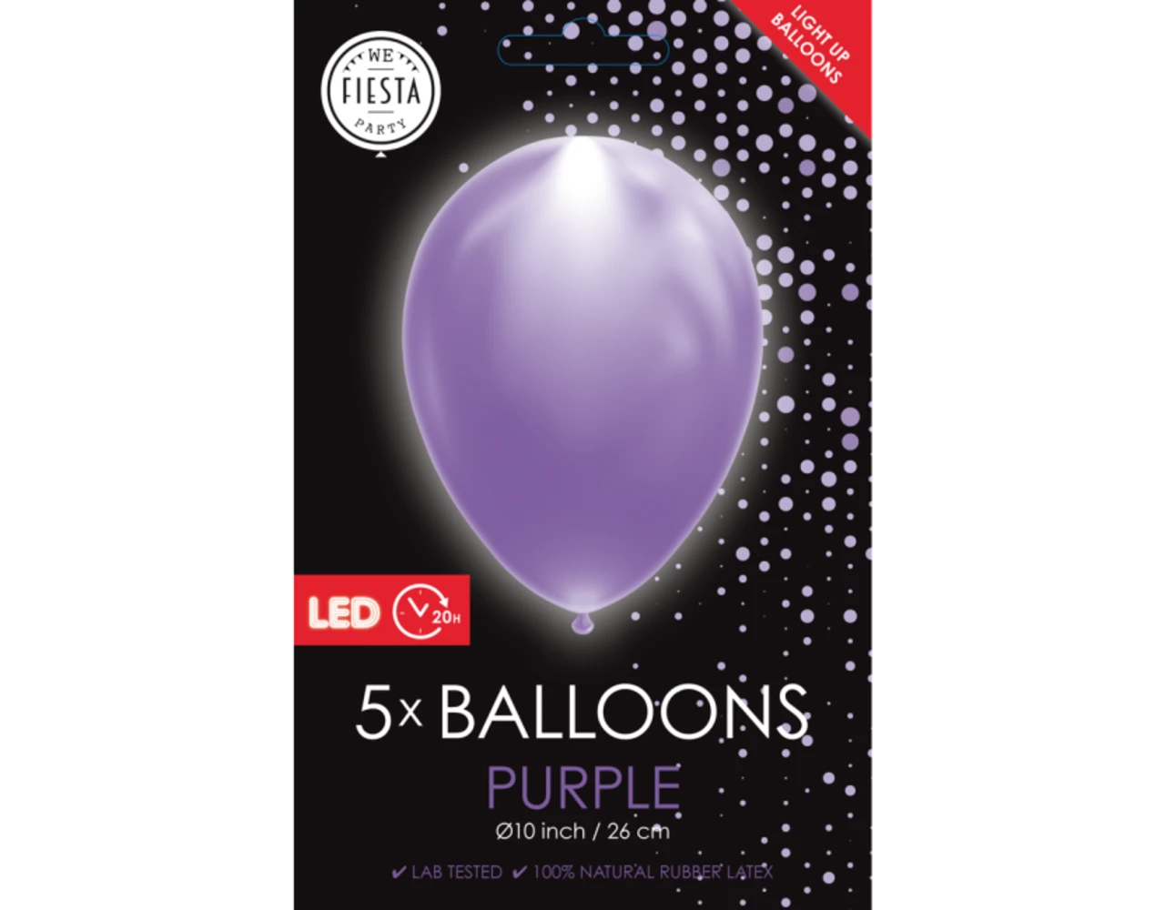 Verpakkingsinhoud: Paarse Led Ballonnen 26cm 5st