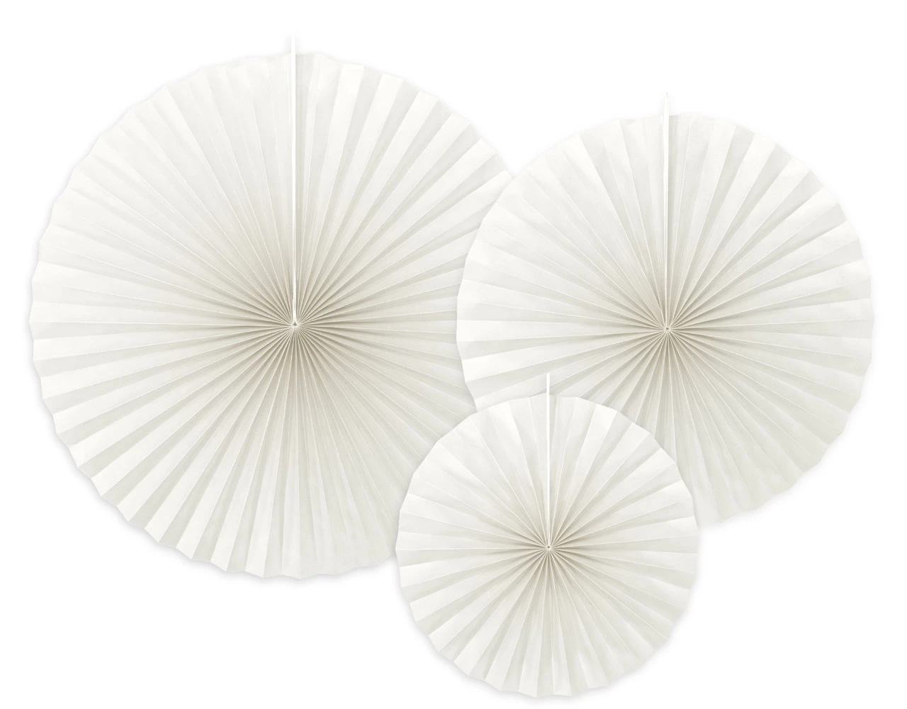 Verpakkingsinhoud: Papieren Waaiers Gebroken Wit Set 23-40cm 3 delig