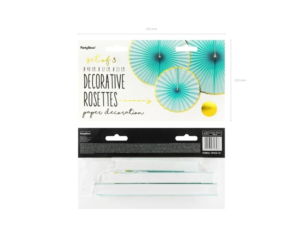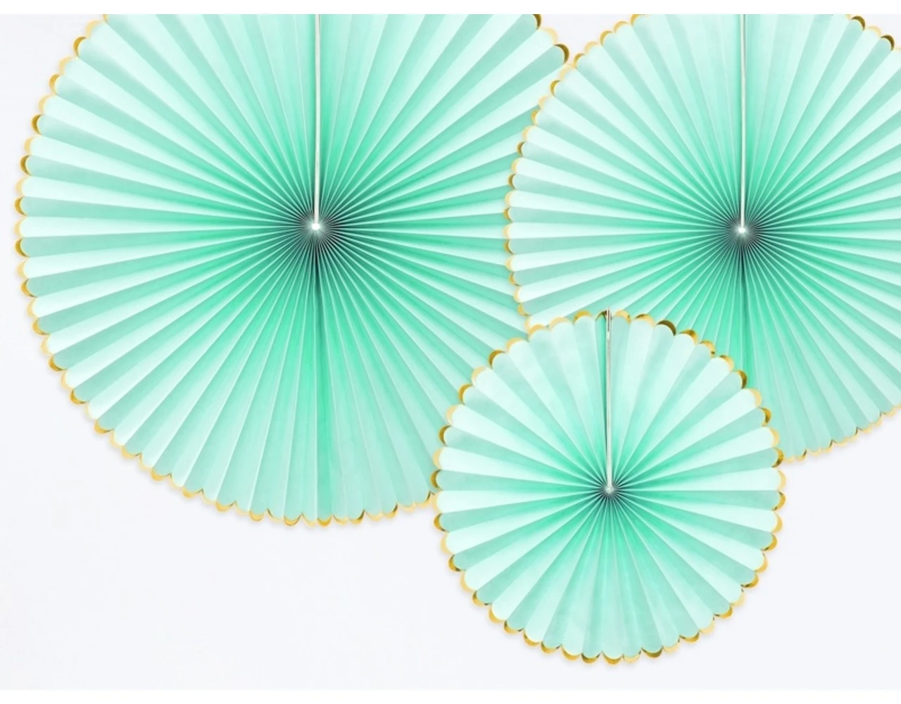 Verpakkingsinhoud: Papieren Waaiers Mintgroen Goud Set 23-40cm 3 delig