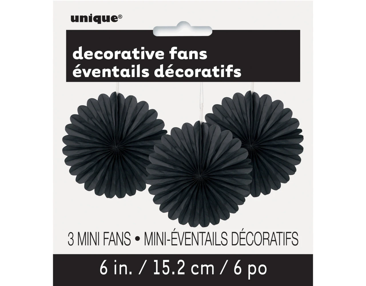 Verpakkingsinhoud: Papieren Waaiers Zwart 15cm 3st