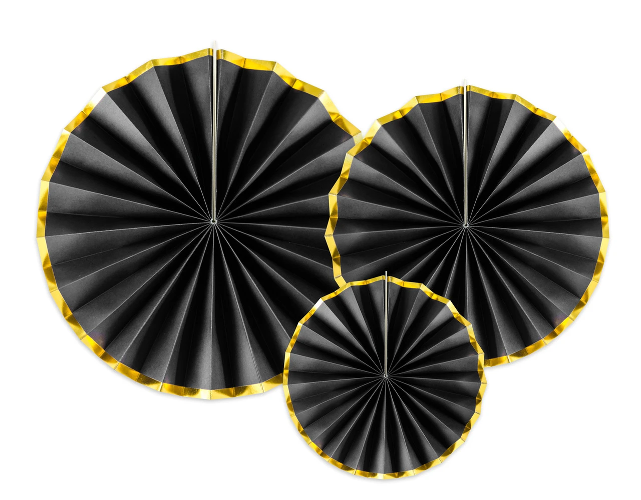 Verpakkingsinhoud: Papieren Waaiers Zwart Set 23-40cm 3 delig
