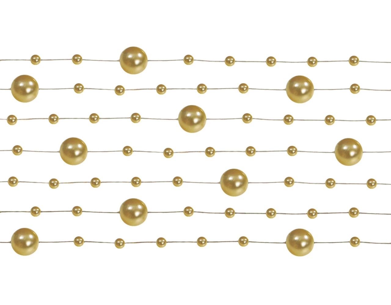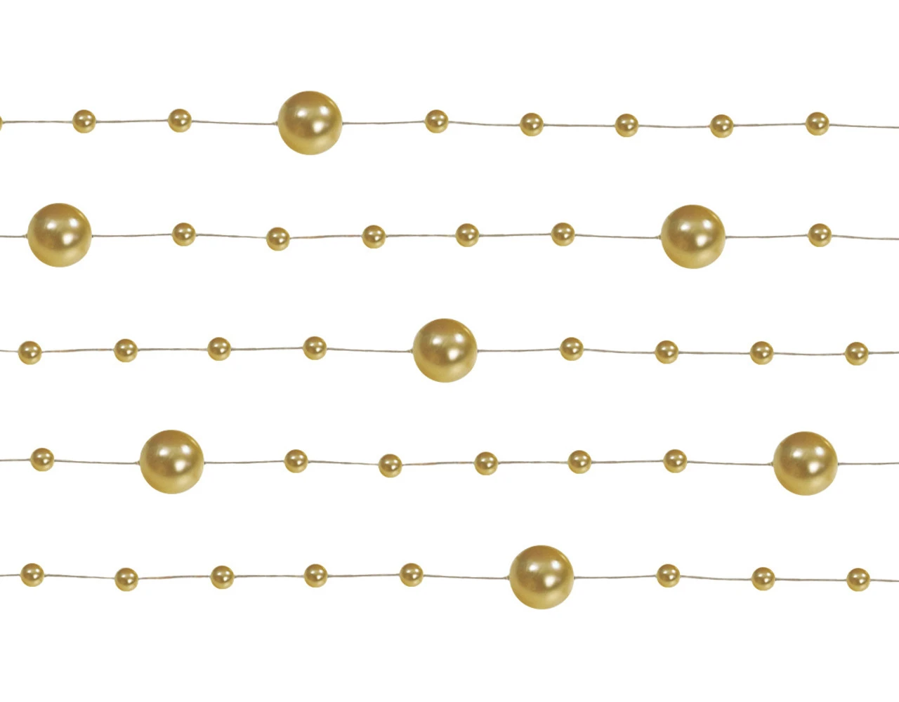 Inhoud: Pearl slingers, goud, lengte 1,3 meter. (1 pkt / 5 pct.)