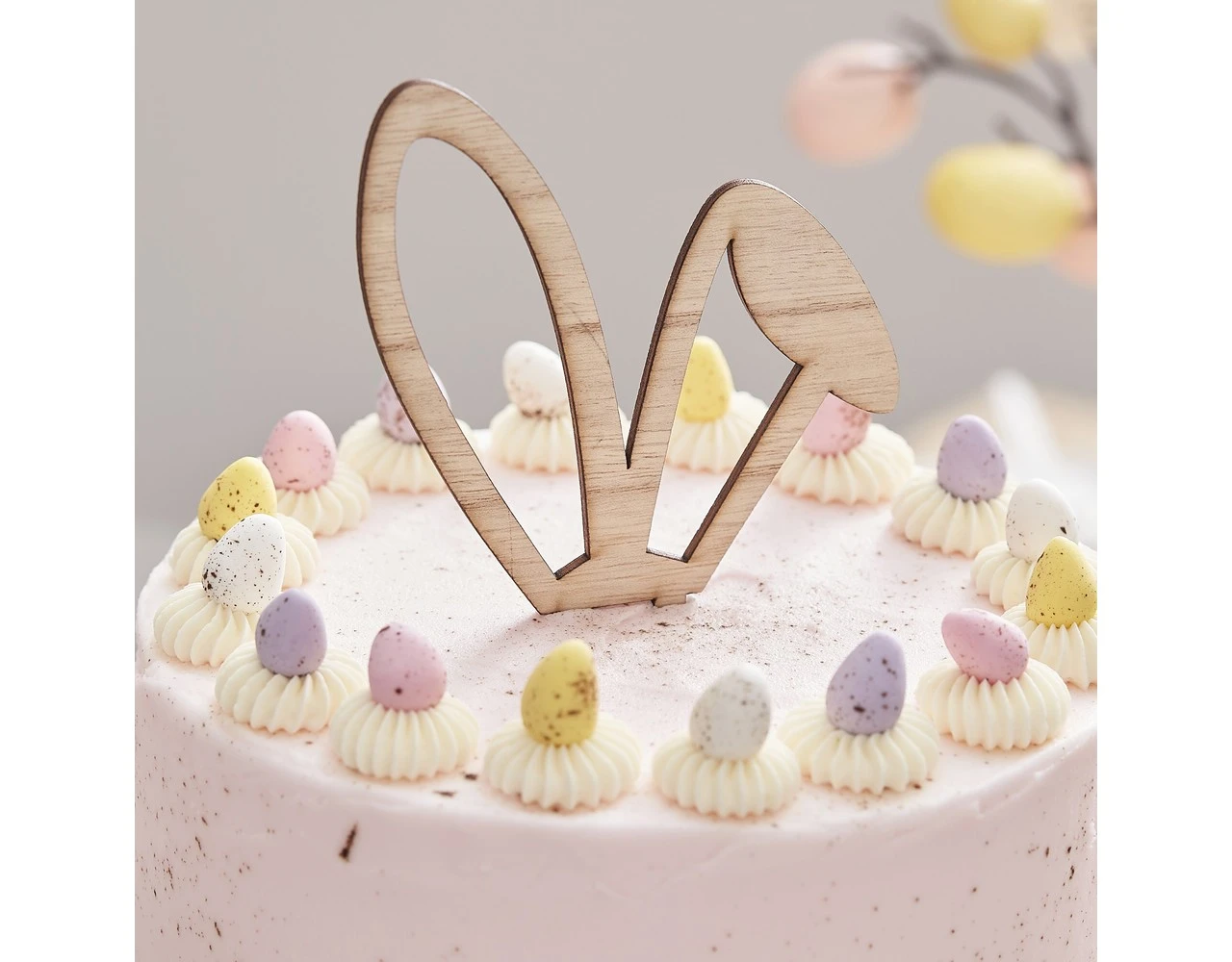 Voeg een schattige finishing touch toe aan je paastaart met onze paastaarttopper met houten konijn.