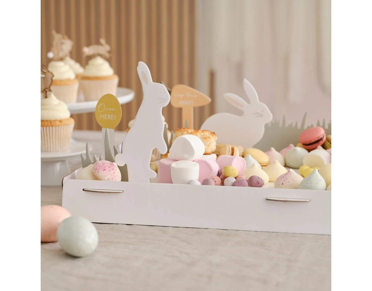 Voeg een finishing touch toe aan uw seizoenspresentatie met deze paasweideplank. Dit graasbord is ontworpen om je mee te nemen op een leuke zoektocht naar paaseieren, met schattige bewegwijzering en konijntjes om je op weg te helpen.