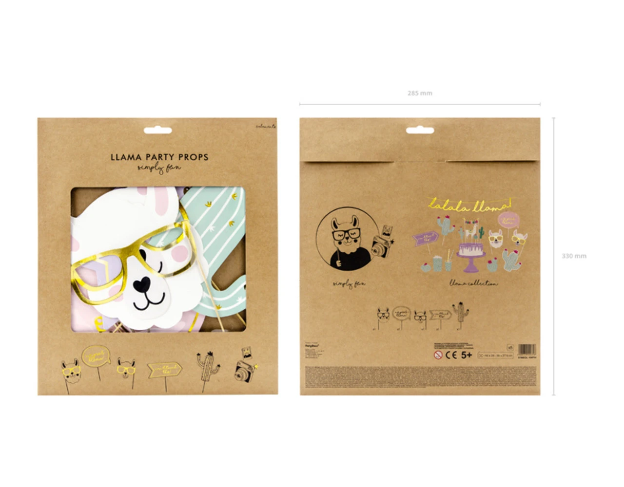Foto rekwisieten Llama, mix van dessins en kleuren, formaat van ca. 16 x 28 cm tot ca. 30 x 27,5 cm.