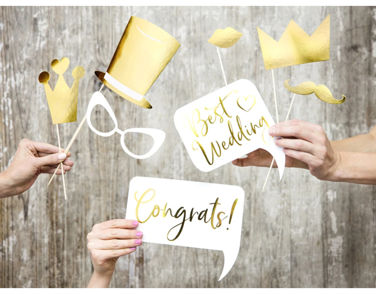 Fotoprops voor bruiloft, diverse kleuren en uitvoeringen, doe het zelf product. Afmeting na montage ca. van 7 x 4 cm tot ca. 22 x 17,5 cm.