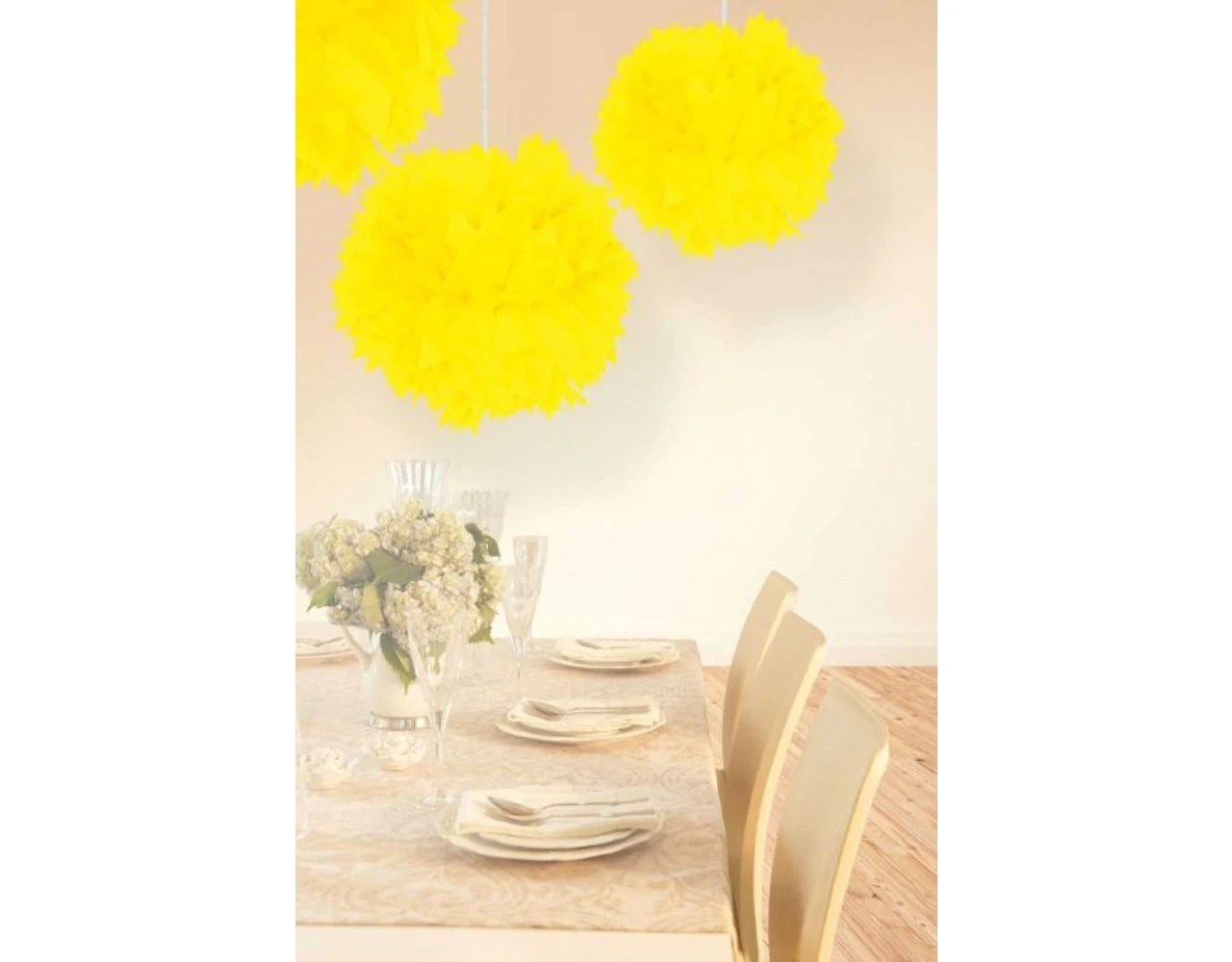 Pompom neon geel 30cm. Inhoud: 1 pompom. Kleur: Geel. Bijvoorbeeld te gebruiken tijdens de volgende feestgelegenheid/feestgelegenheden: verjaardag, Themafeest, kinderfeestje. Deze pompom is 12 inch/30 cm. Het artikel is gemaakt van papier.
