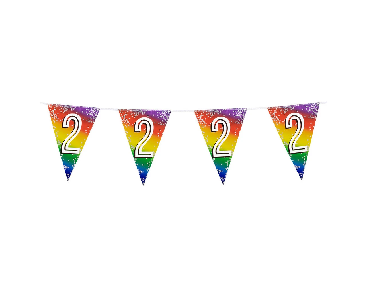 Inhoud: 15 vlaggen (verdeeld over 6 meter en 2 meter koord aan beide zijden)