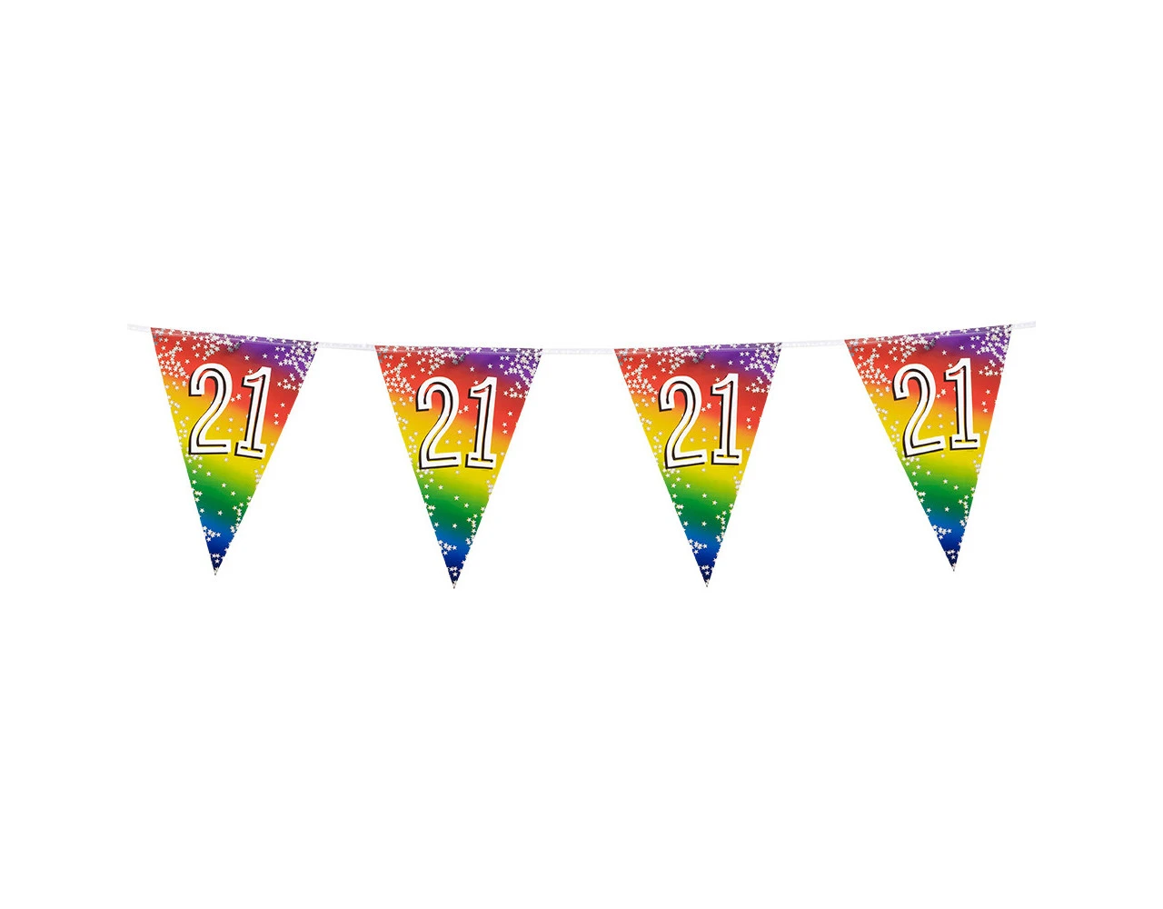 Inhoud: 15 vlaggen (verdeeld over 6 meter en 2 meter koord aan beide zijden)