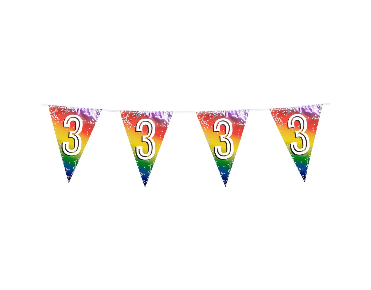 Inhoud: 15 vlaggen (verdeeld over 6 meter en 2 meter koord aan beide zijden)