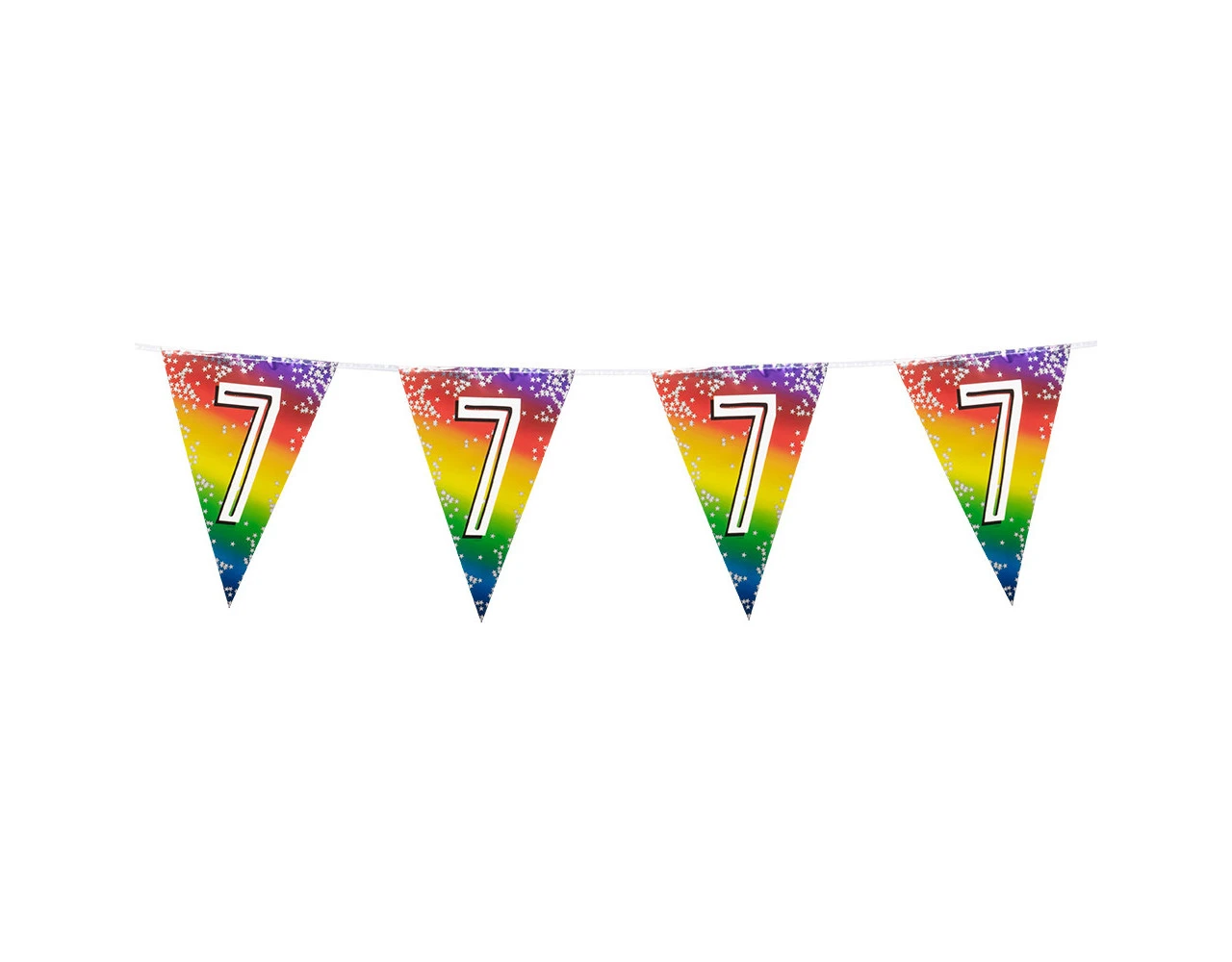 Inhoud: 15 vlaggen (verdeeld over 6 meter en 2 meter koord aan beide zijden)