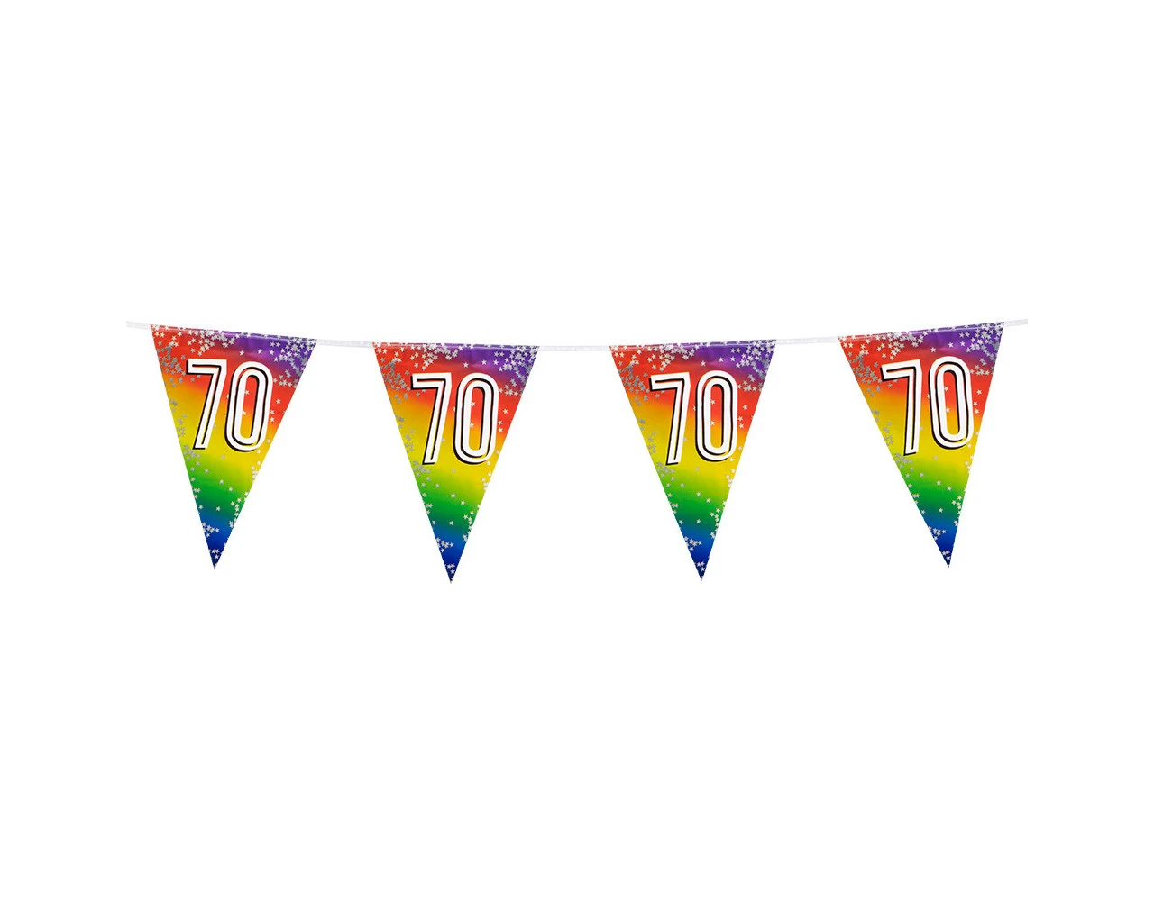 Inhoud: 15 vlaggen (verdeeld over 6 meter en 2 meter koord aan beide zijden)