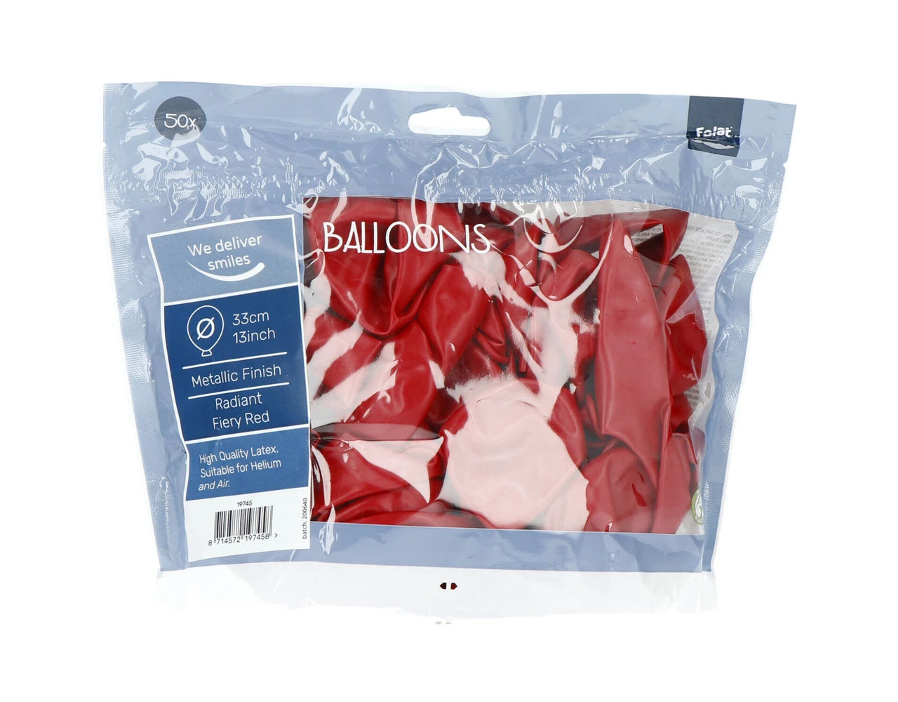 Ballonnen Radiant Fiery Red Metallic 33cm – 50 stuks. Inhoud: 50 latex ballonnen. Kleur: Rood. Kleureffect: Metallic. Bijvoorbeeld te gebruiken tijdens de volgende feestgelegenheid/feestgelegenheden: Verjaardag, Kinderfeestje en Themafeest. Elke ballon is 13 inch/33 cm. Het artikel is gemaakt van latex.
