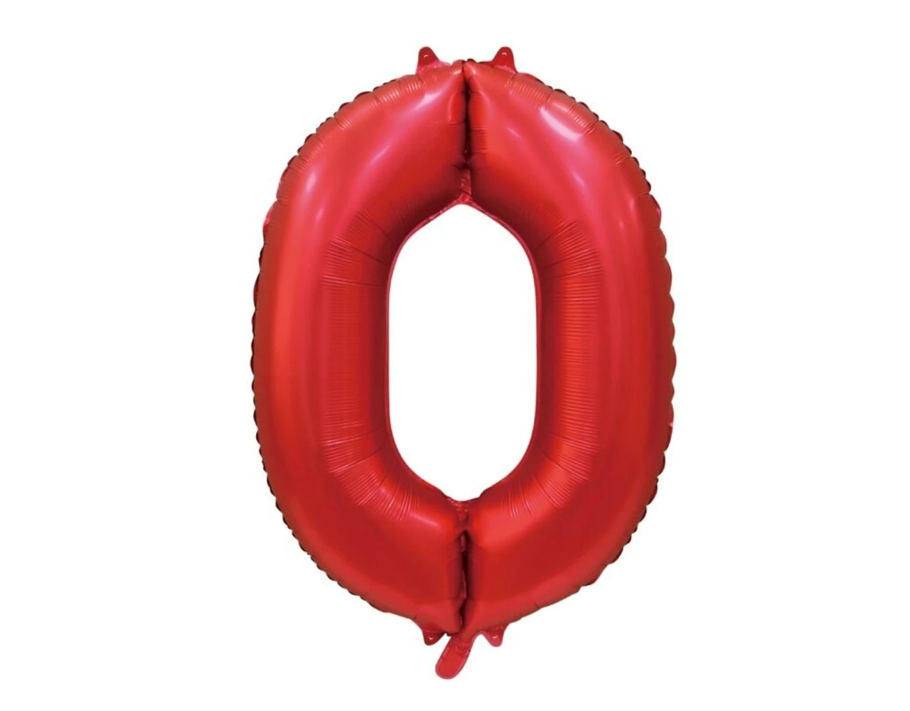 Rode Cijfer Ballon 0 Jaar Glans 86cm
