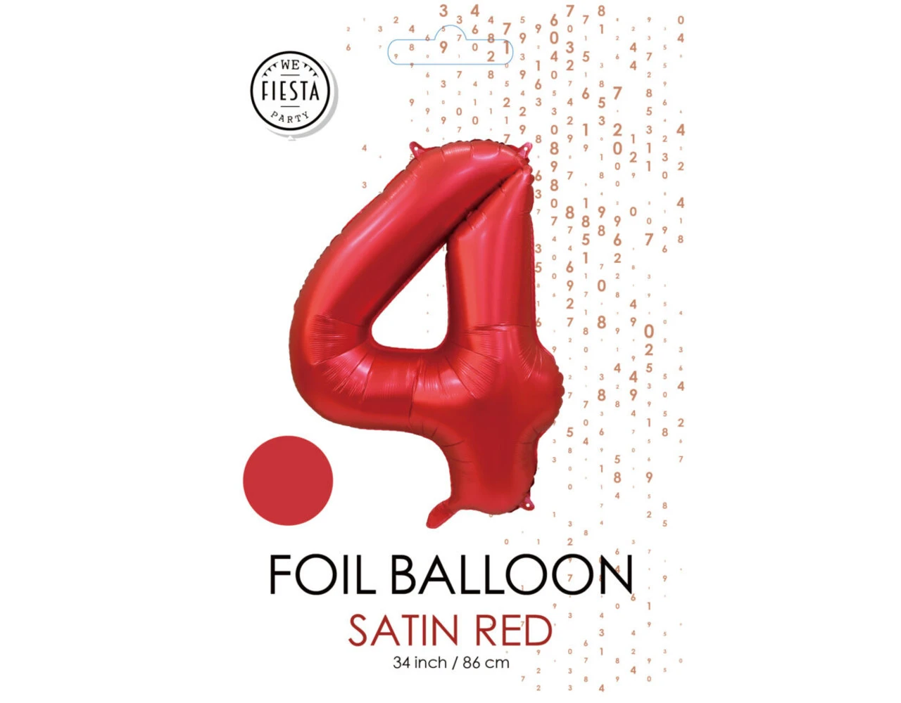 Rode Cijfer Ballon 4 Jaar Glans 86cm