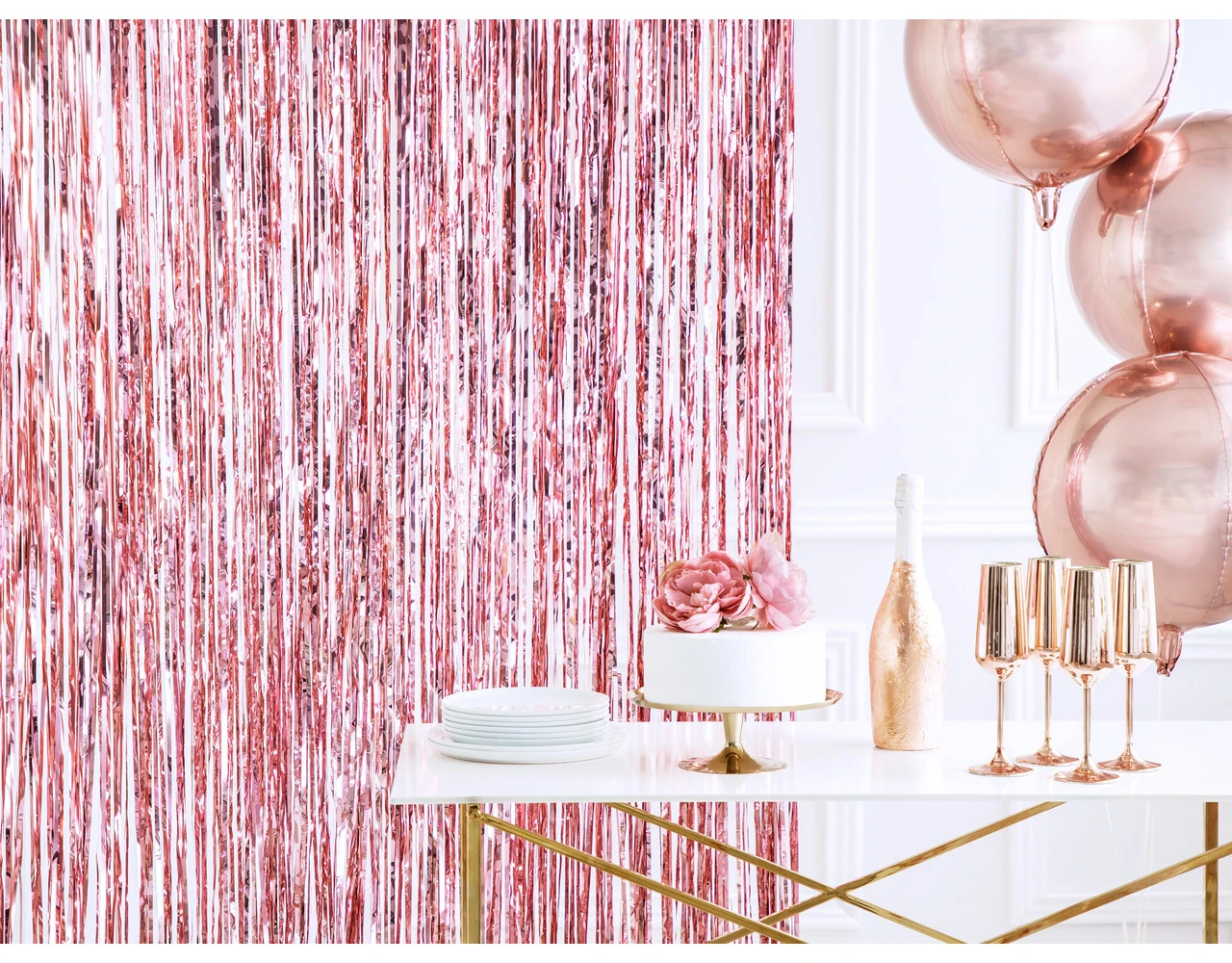 Inhoud: Party gordijn in rose gouden kleur, breedte ca. 90 cm, hoogte ca. 250 cm.