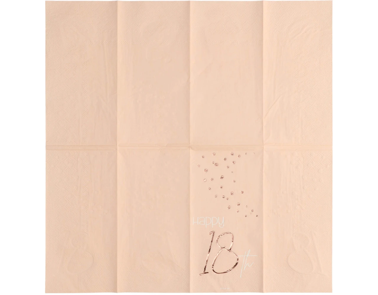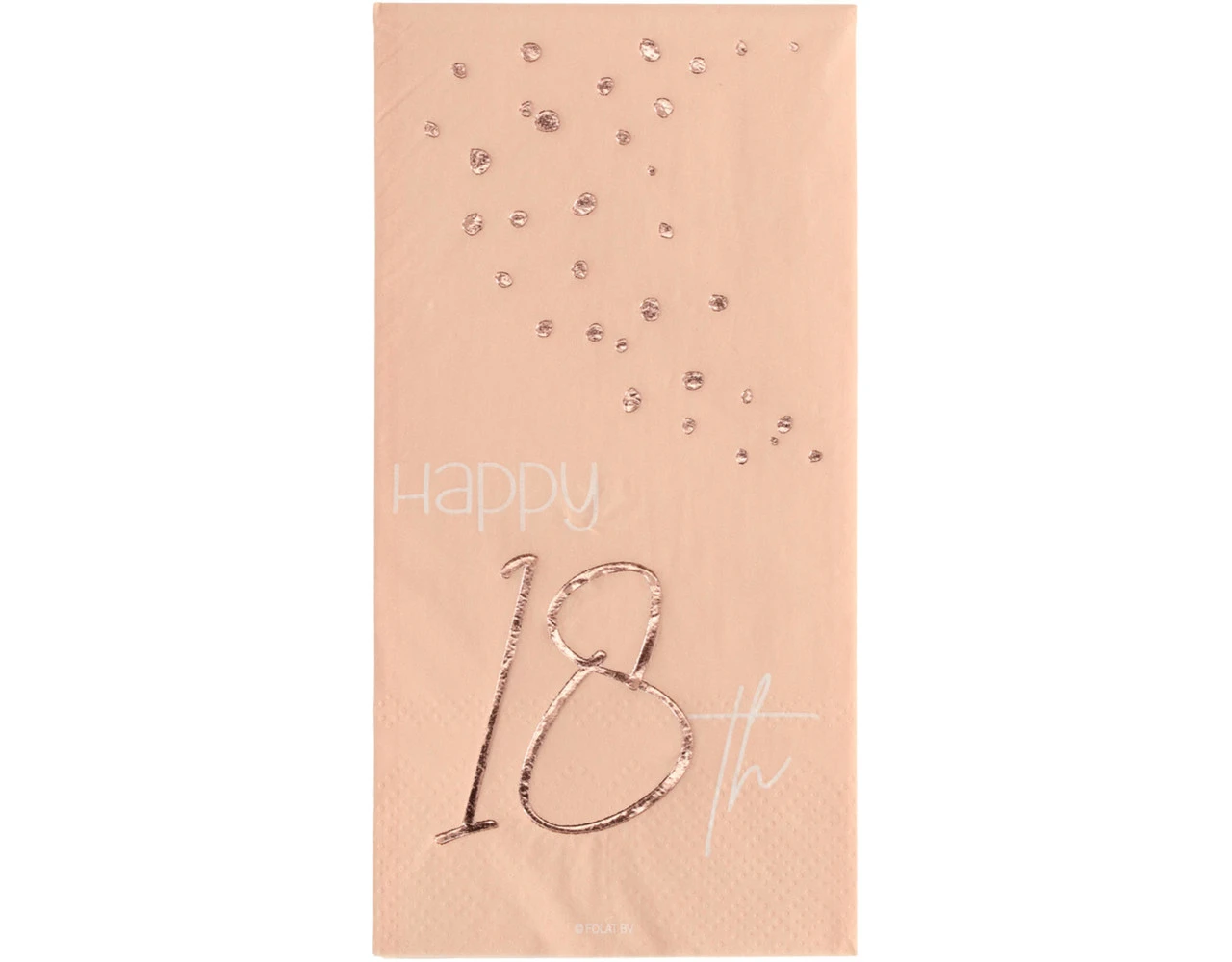 Servetten Elegant Lush Blush 18 Jaar 33x33cm – 10 stuks. Inhoud: 10 servetten van 33x33cm. Kleur: Roze. Bijvoorbeeld te gebruiken tijdens de volgende feestgelegenheid/feestgelegenheden: Verjaardag, Jubileum. Een servet is 33x33cm groot. Het artikel is gemaakt van papier. De hangtags van de servetten worden er apart bijgeleverd.