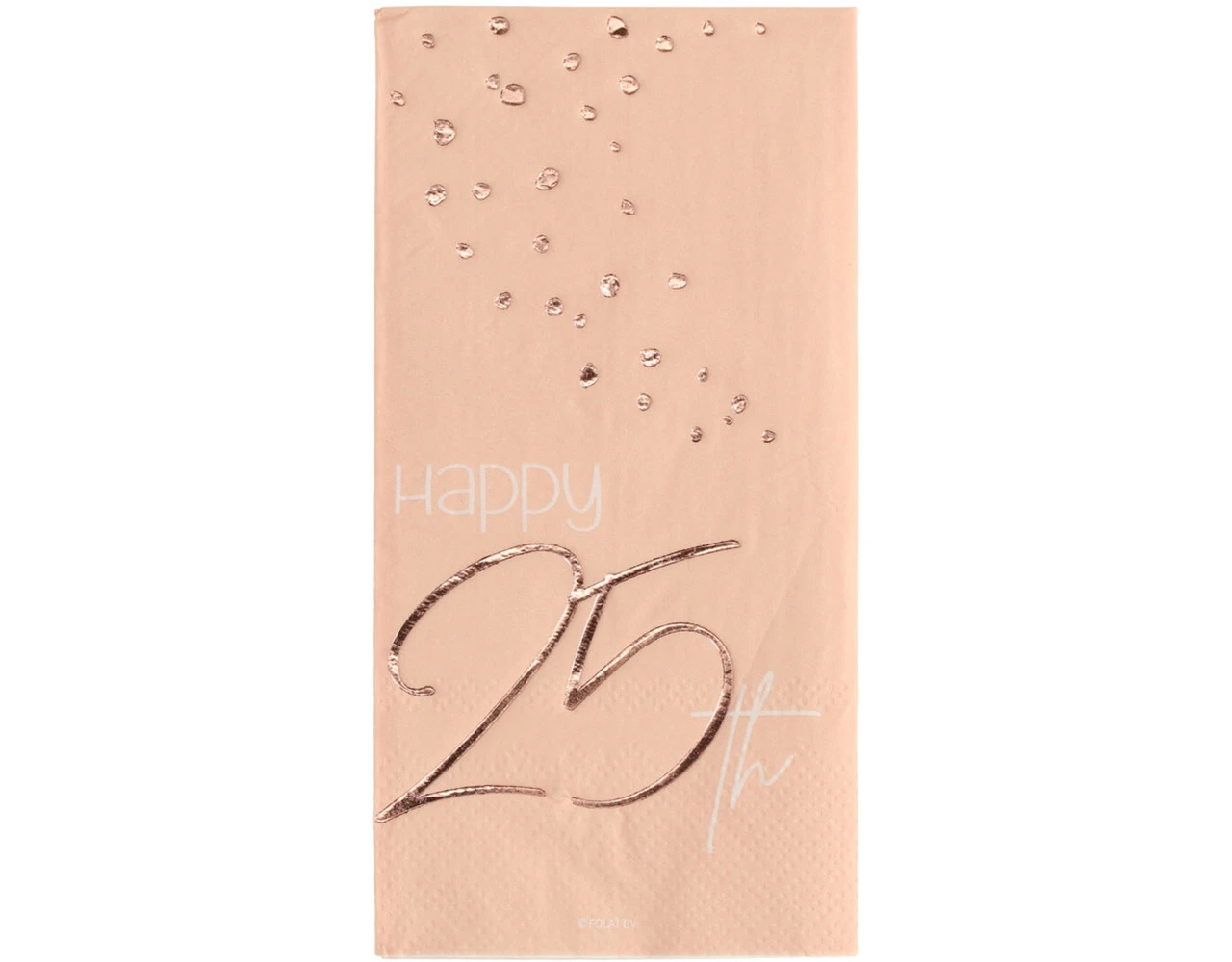 Servetten Elegant Lush Blush 25 Jaar 33x33cm – 10 stuks. Inhoud: 10 servetten van 33x33cm. Kleur: Roze. Bijvoorbeeld te gebruiken tijdens de volgende feestgelegenheid/feestgelegenheden: Verjaardag, Jubileum. Een servet is 33x33cm groot. Het artikel is gemaakt van papier. De hangtags van de servetten worden er apart bijgeleverd.