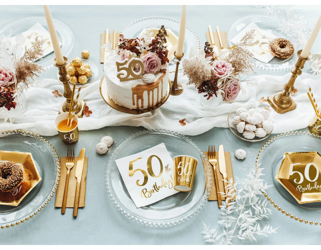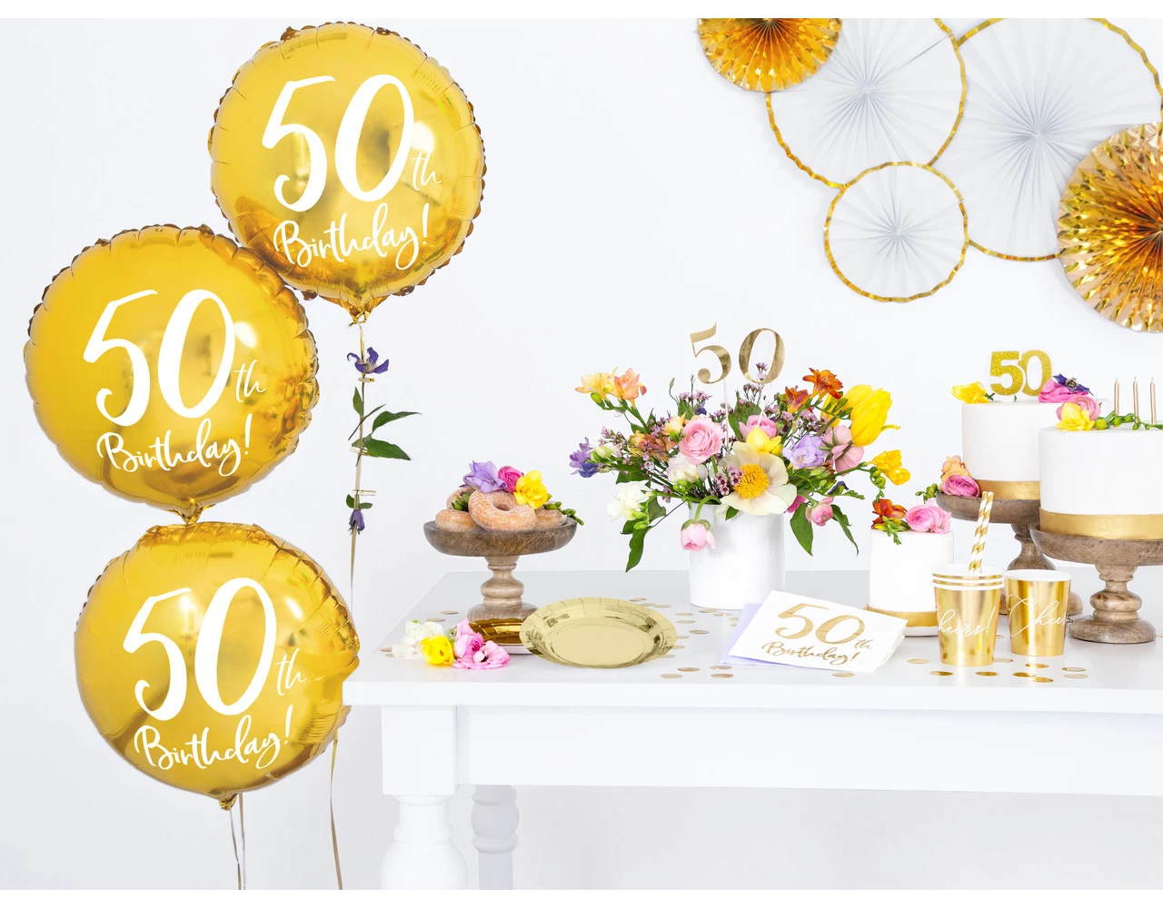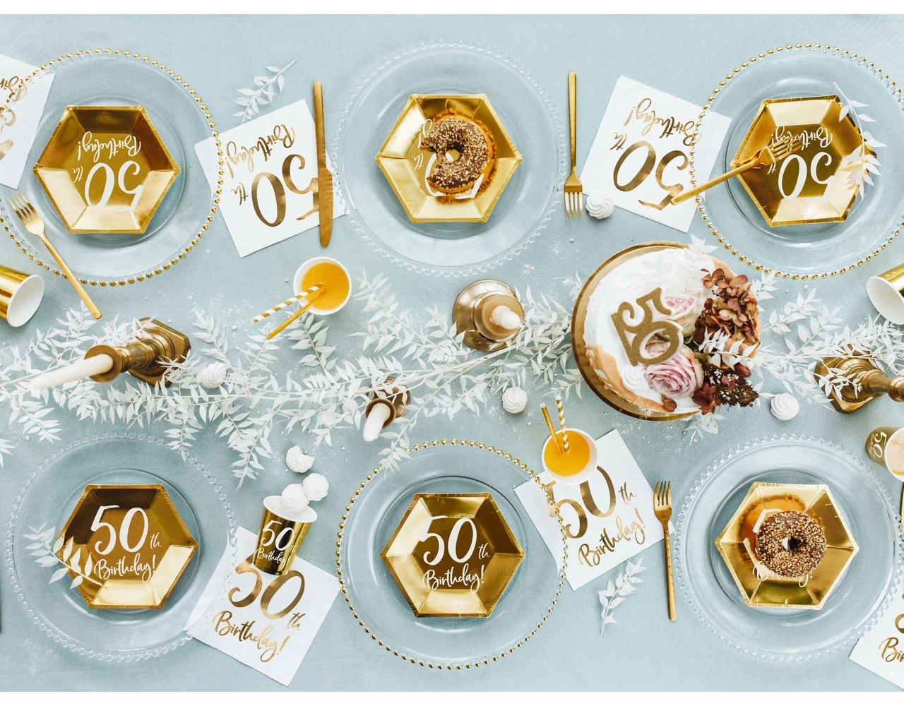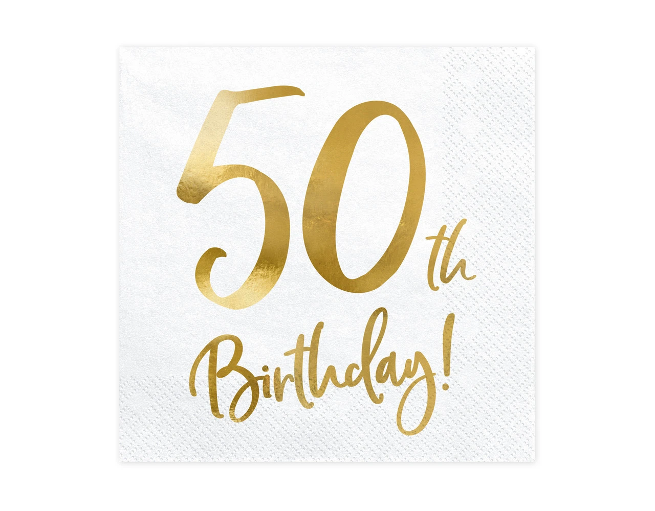 Inhoud: Papieren servetten 50ste Verjaardag, wit met gouden inscriptie, de grootte na het uitklappen van ca.. 33 x 33 cm, grootte na montage ca. 16.5 x 16.5 cm.