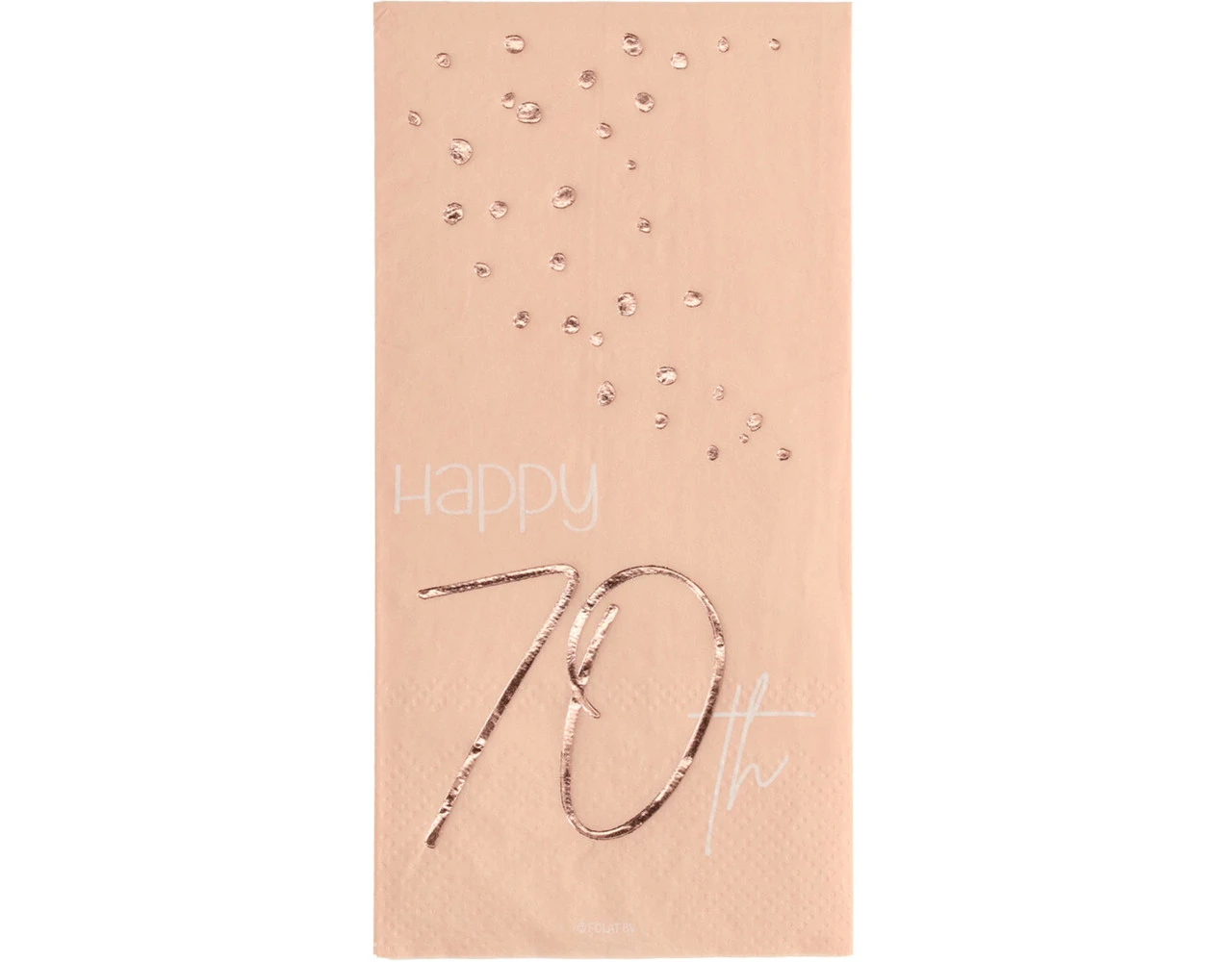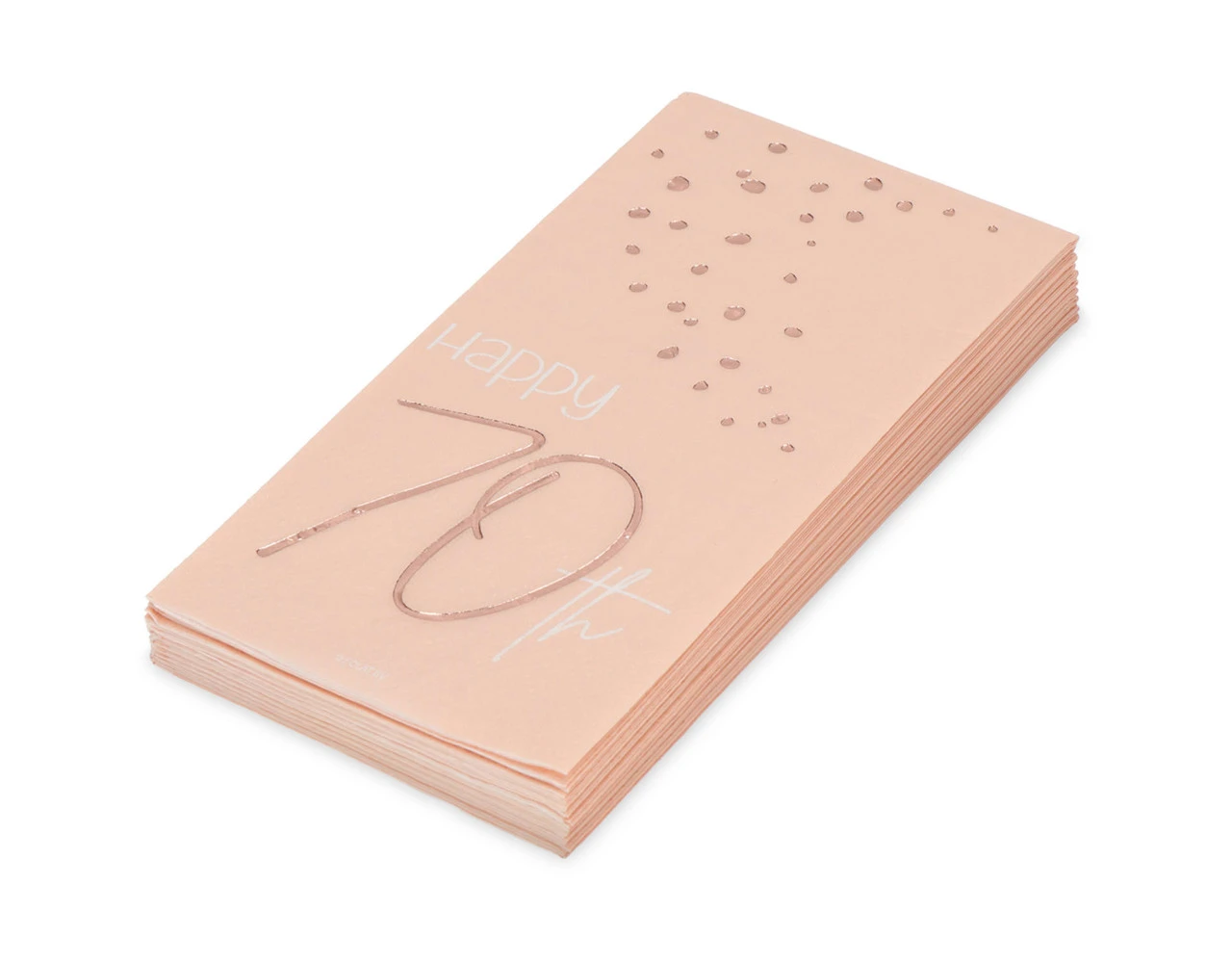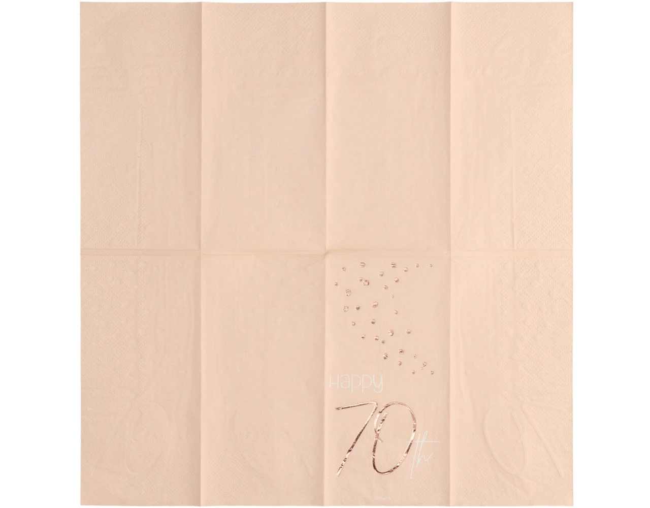 Servetten Elegant Lush Blush 70 Jaar 33x33cm – 10 stuks. Inhoud: 10 servetten van 33x33cm. Kleur: Roze. Bijvoorbeeld te gebruiken tijdens de volgende feestgelegenheid/feestgelegenheden: Verjaardag, Jubileum. Een servet is 33x33cm groot. Het artikel is gemaakt van papier. De hangtags van de servetten worden er apart bijgeleverd.