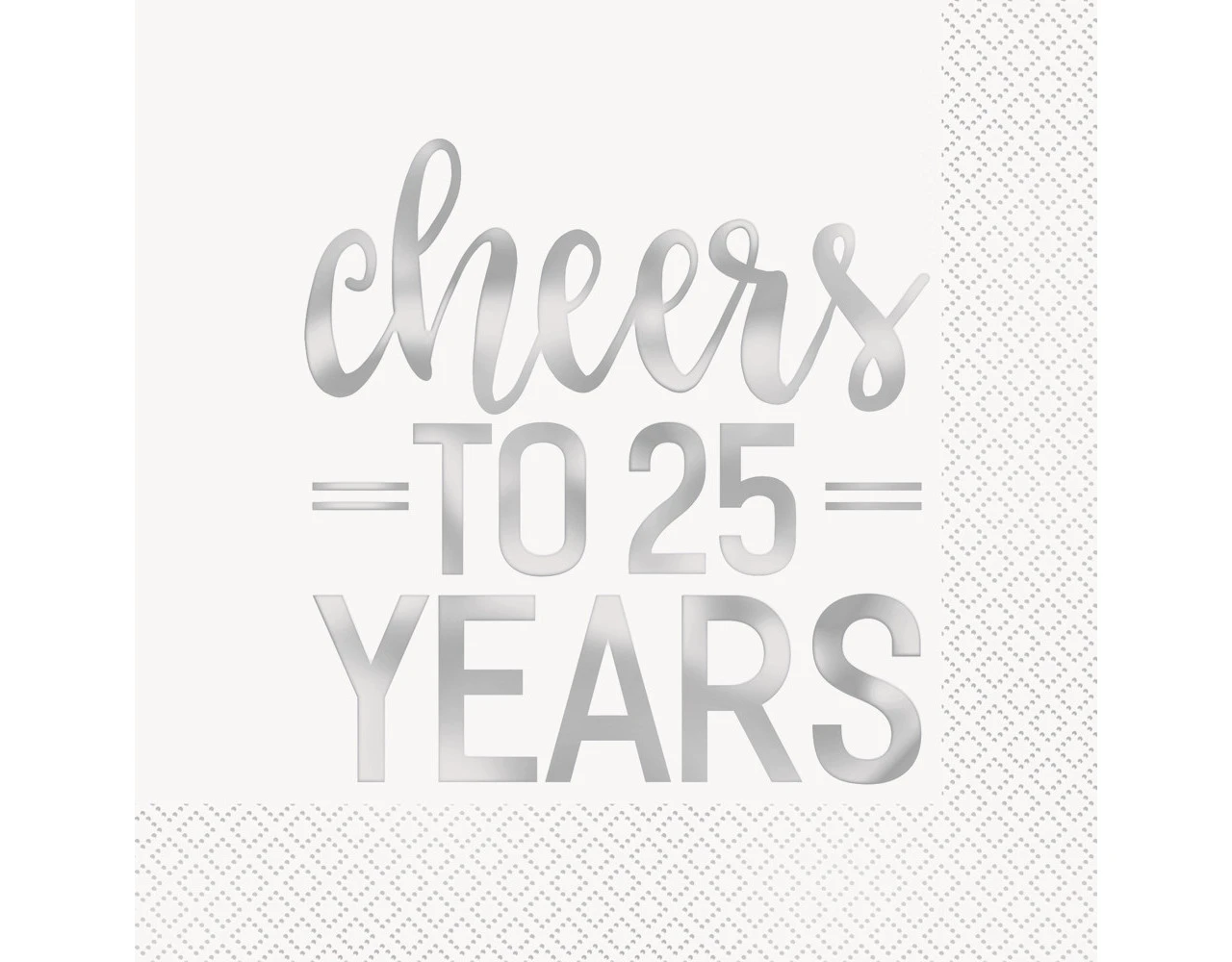 Verpakkingsinhoud: Servetten Cheers To 25 Year Zilver 25cm 16st