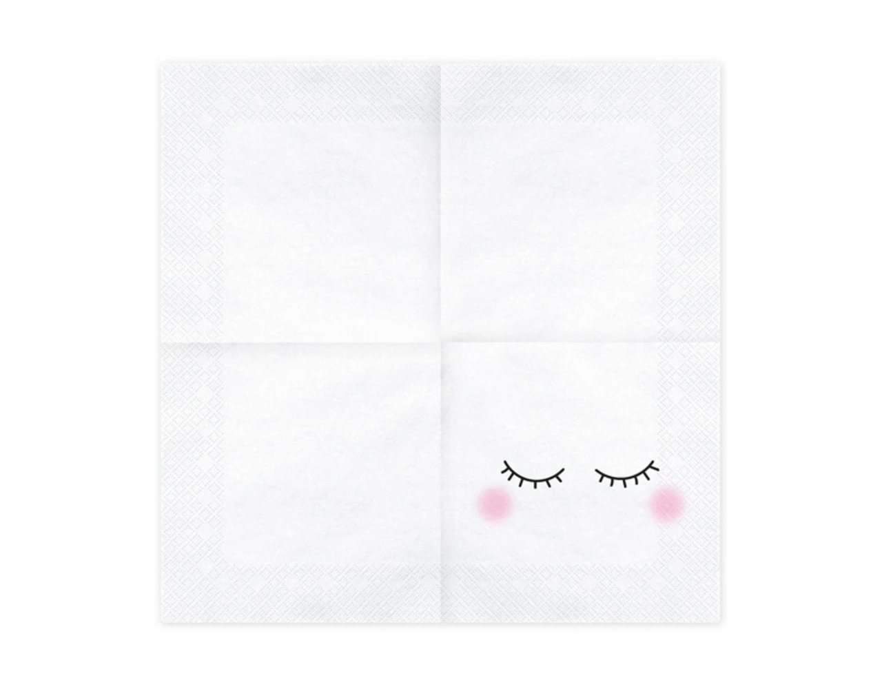 Papieren servetten Face, wit, formaat na uitvouwen ca. 33 x 33 cm, formaat na in elkaar zetten ca. 16,5 x 16,5 cm.