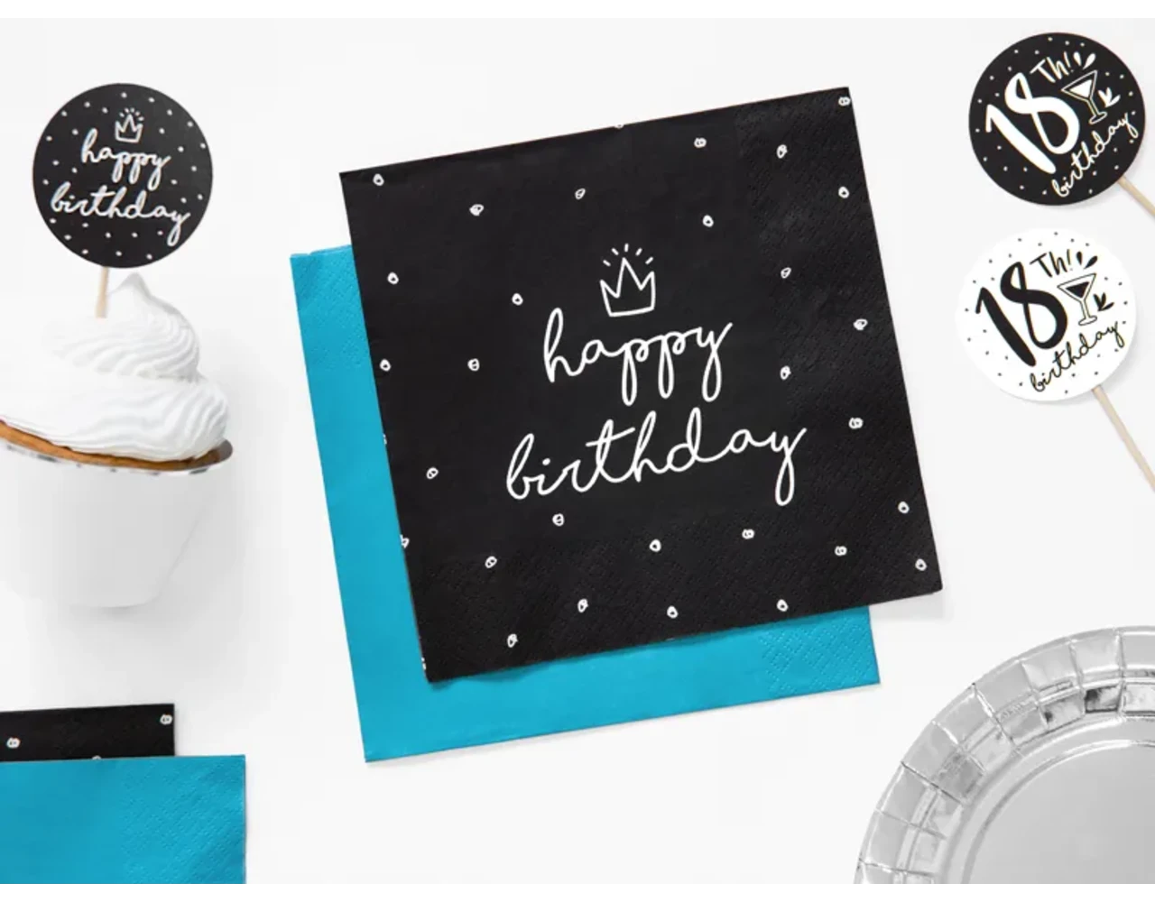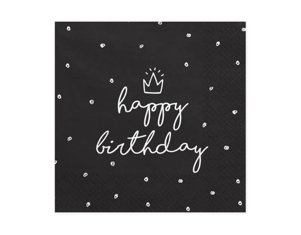 3-laags servetten Happy Birthday, zwart met witte opdruk, formaat 33 x 33 cm.