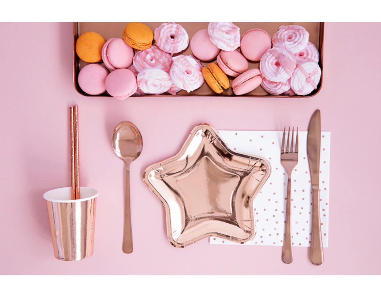 Papieren servetten in kleur met patroon van stippen in rosŽgoudkleur, afmeting na uitvouwen ca. 33 x 33 cm, afmeting na vouwen ca. 16,5 x 16,5 cm.