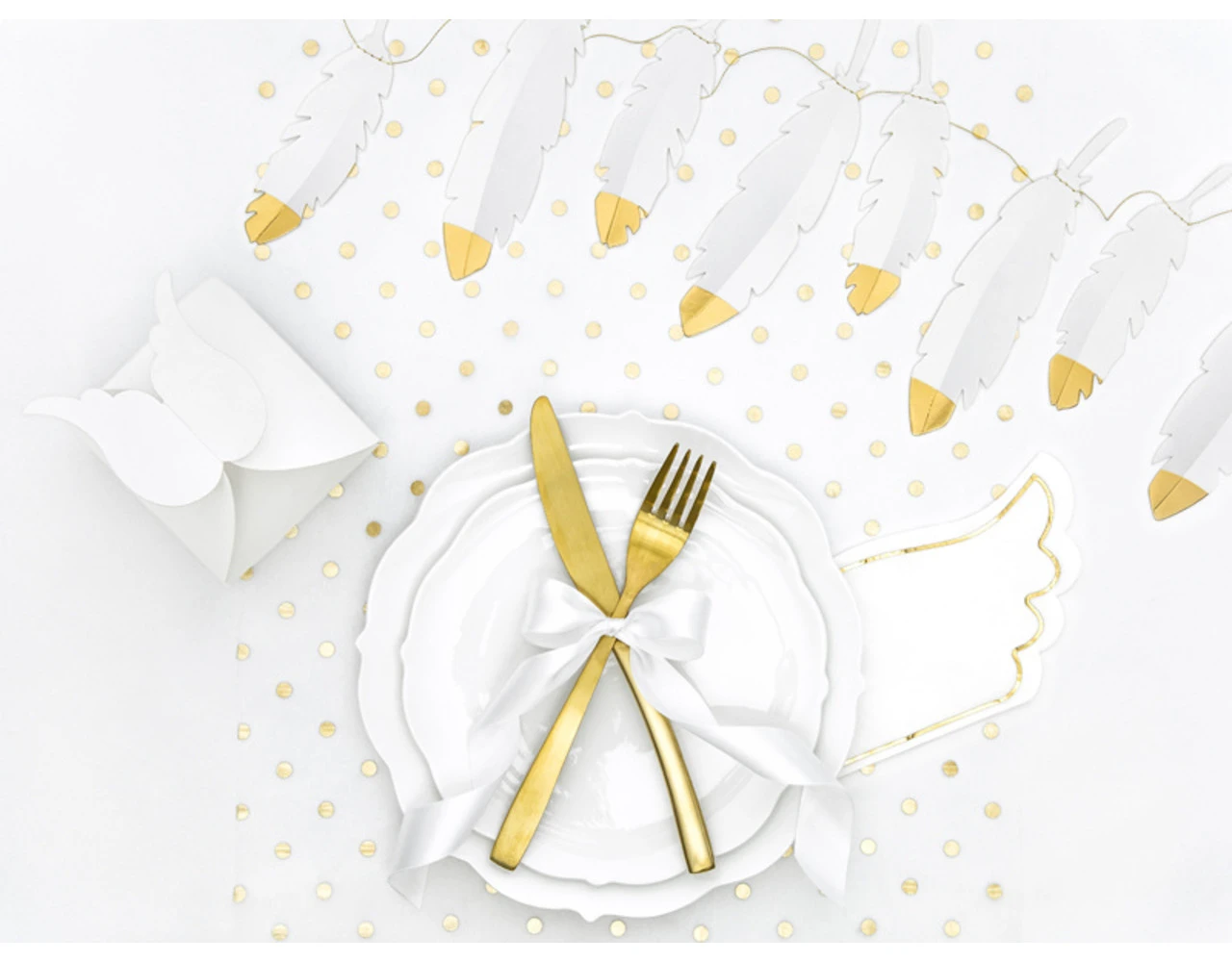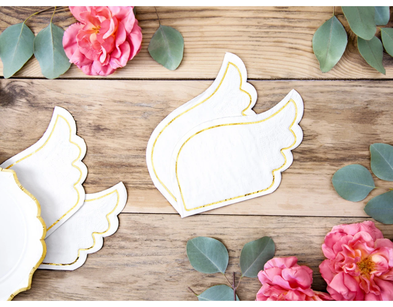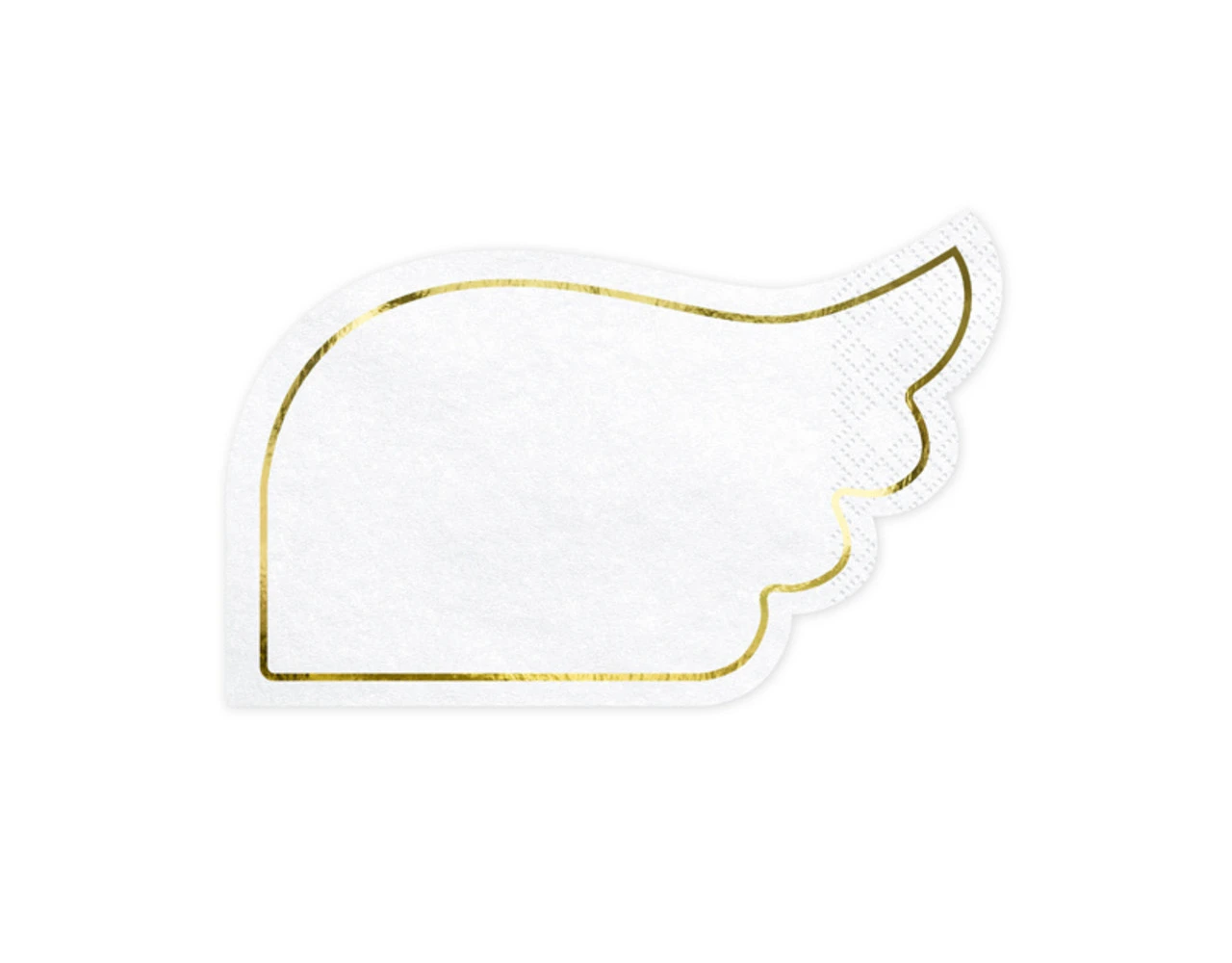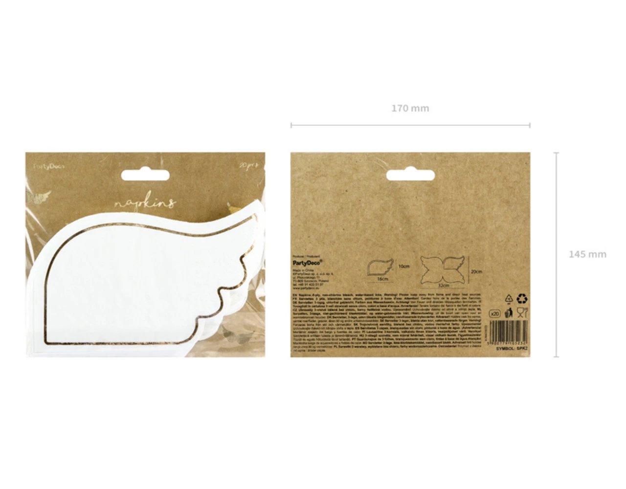 Papieren servetten Wings, wit met goud-metallic opdruk, afmeting na uitvouwen: ca. 32 x 20 cm, afmeting na samenvoegen ca. 16 x 10 cm.