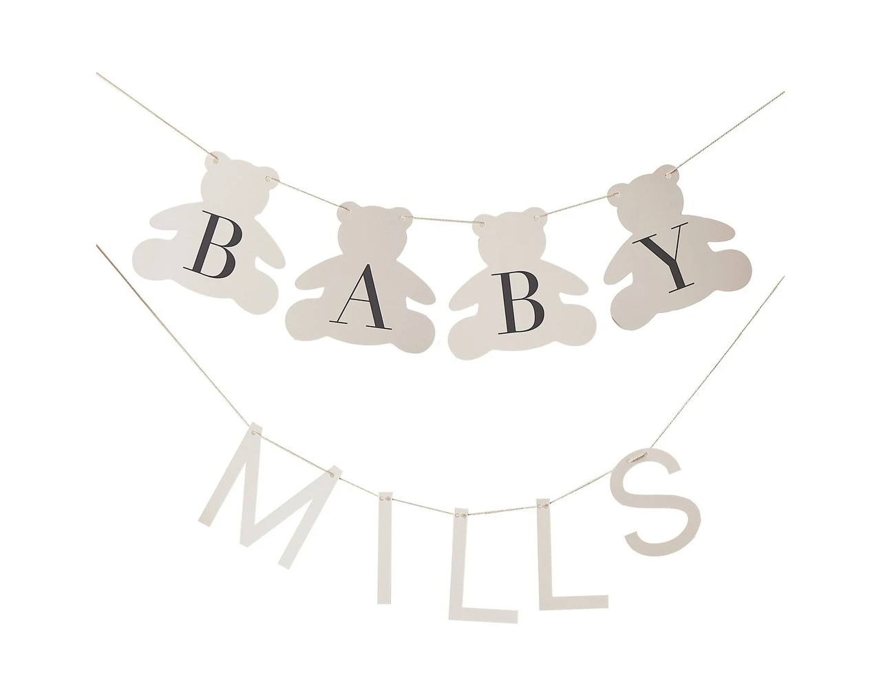 Versier je babyshower met deze schattige aanpasbare teddybeer babyshower slinger. Onze schattige vlaggetjes zijn de perfecte decoraties voor babyshowers om de nieuwe baby te vieren!