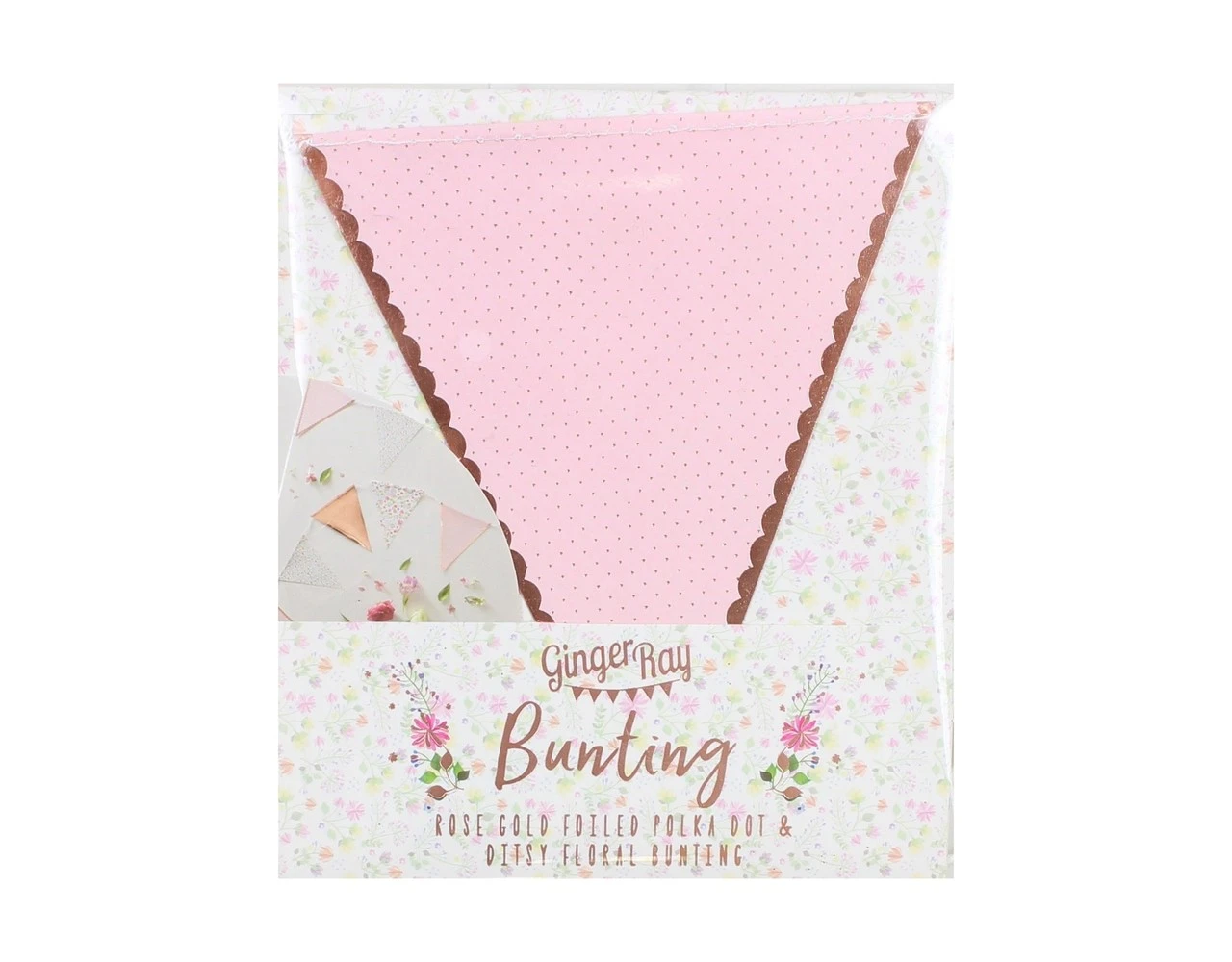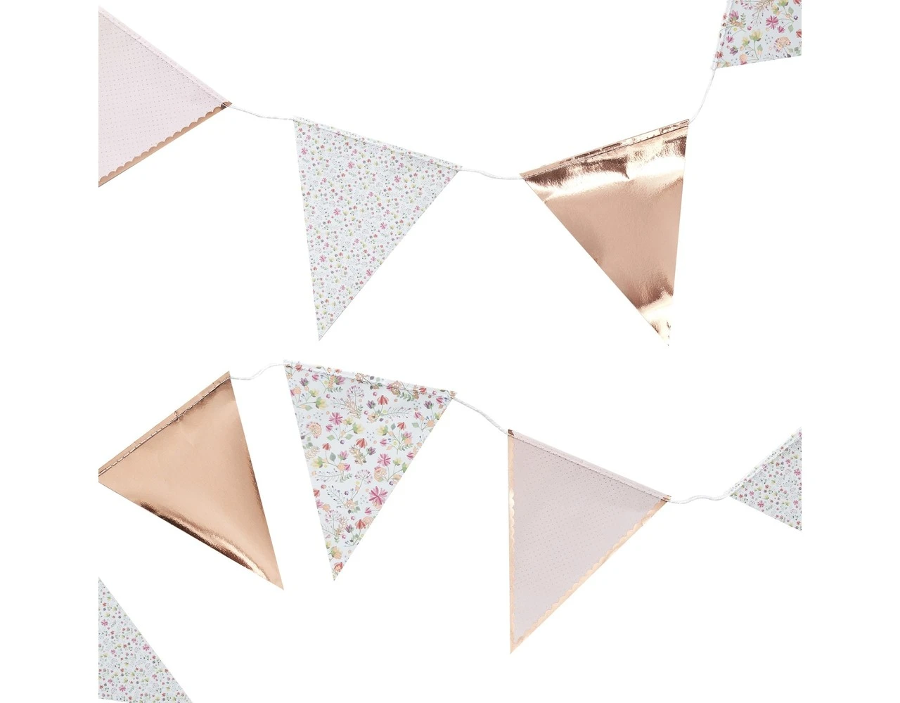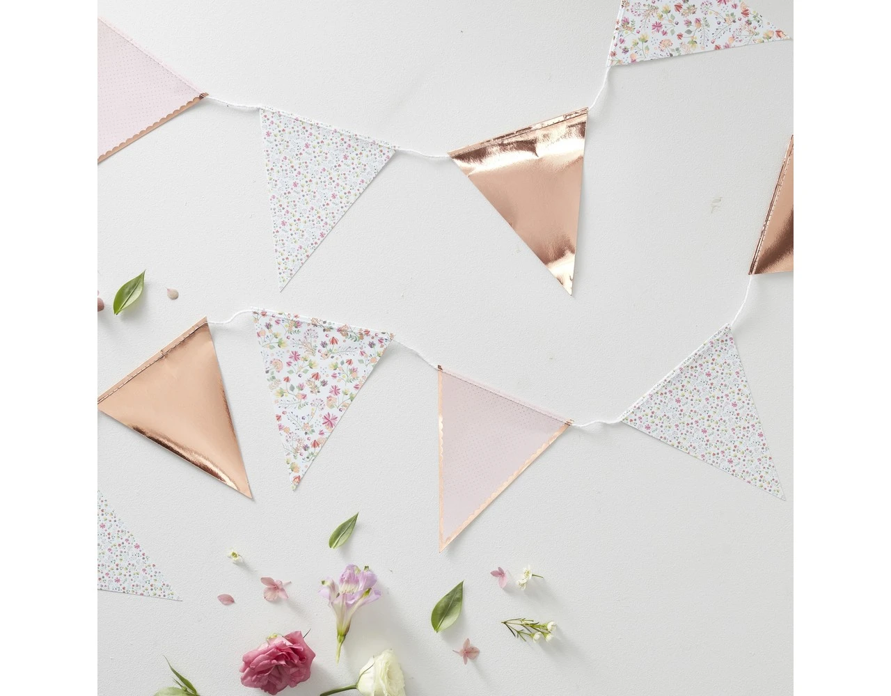 Deze prachtige bloemenslinger is perfect voor al je lente- en zomerfeesten! De rosΓ©gouden slingervlaggen voegen een vleugje sprankeling toe aan deze schattige decoratie.