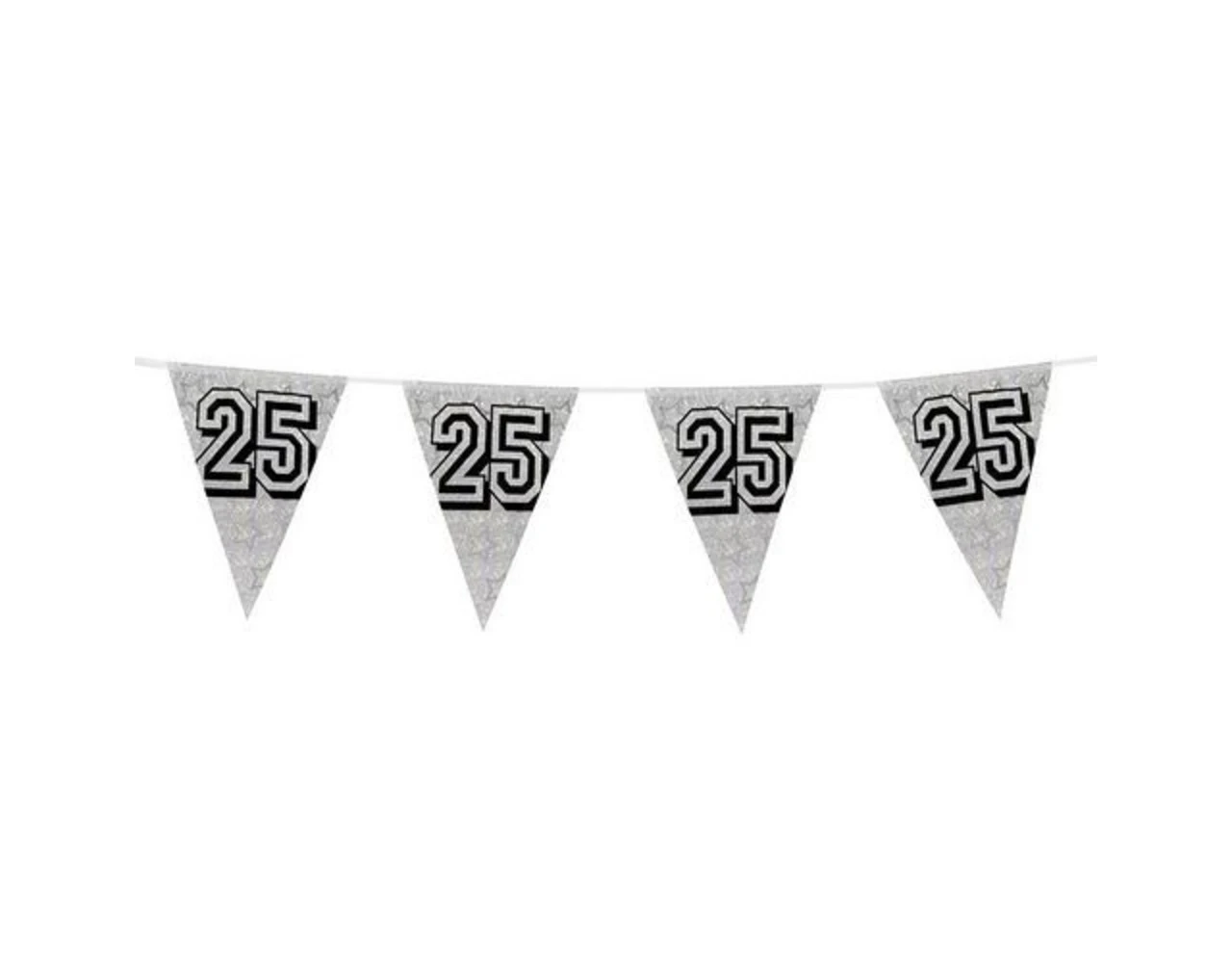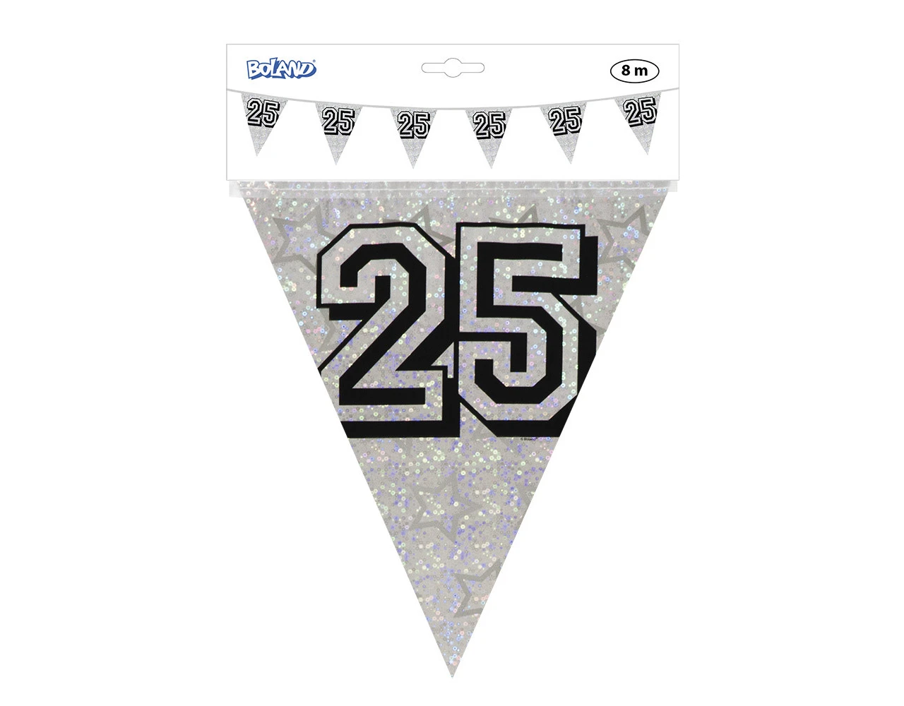 Verpakkingsinhoud: Slingers 25 Jaar Zilver Glitter 8m