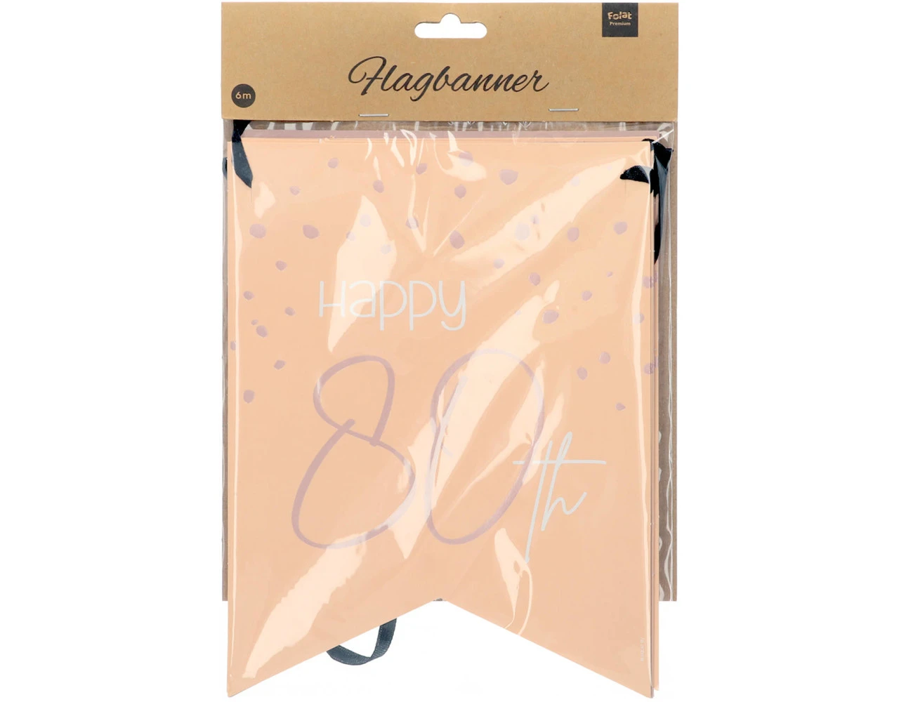 Vlaggenlijn Elegant Lush Blush 80 Jaar – 6 meter. Inhoud: 1 vlaggenlijn van 6 meter. Kleur: Roze. Bijvoorbeeld te gebruiken tijdens de volgende feestgelegenheid/feestgelegenheden: Verjaardag, Jubileum. De vlaggenlijn is 6 meter lang met 10 vlaggetjes van 23 cm hoog. Het artikel is gemaakt van papier.