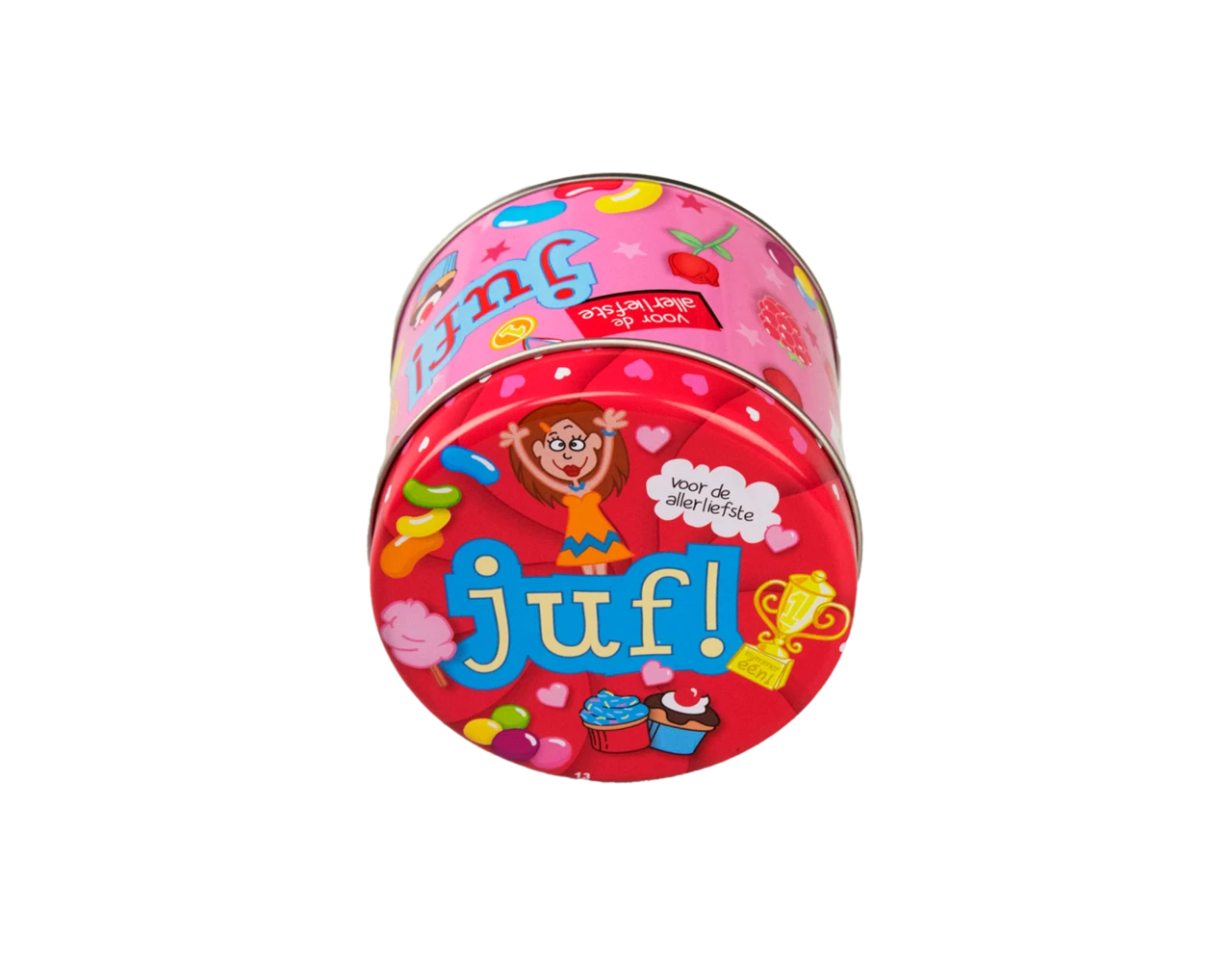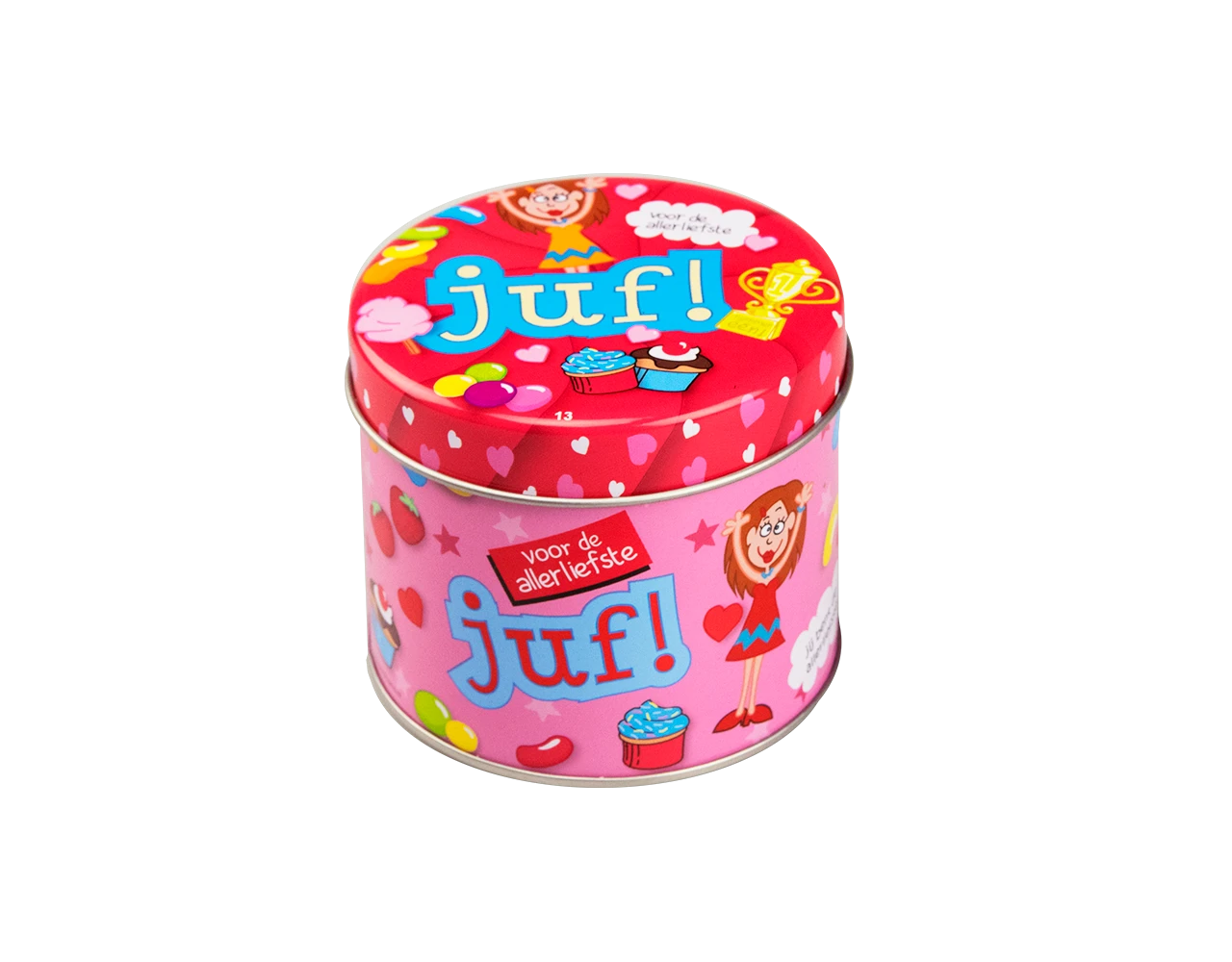 Verpakkingsinhoud: Snoepblik Juf 9cm