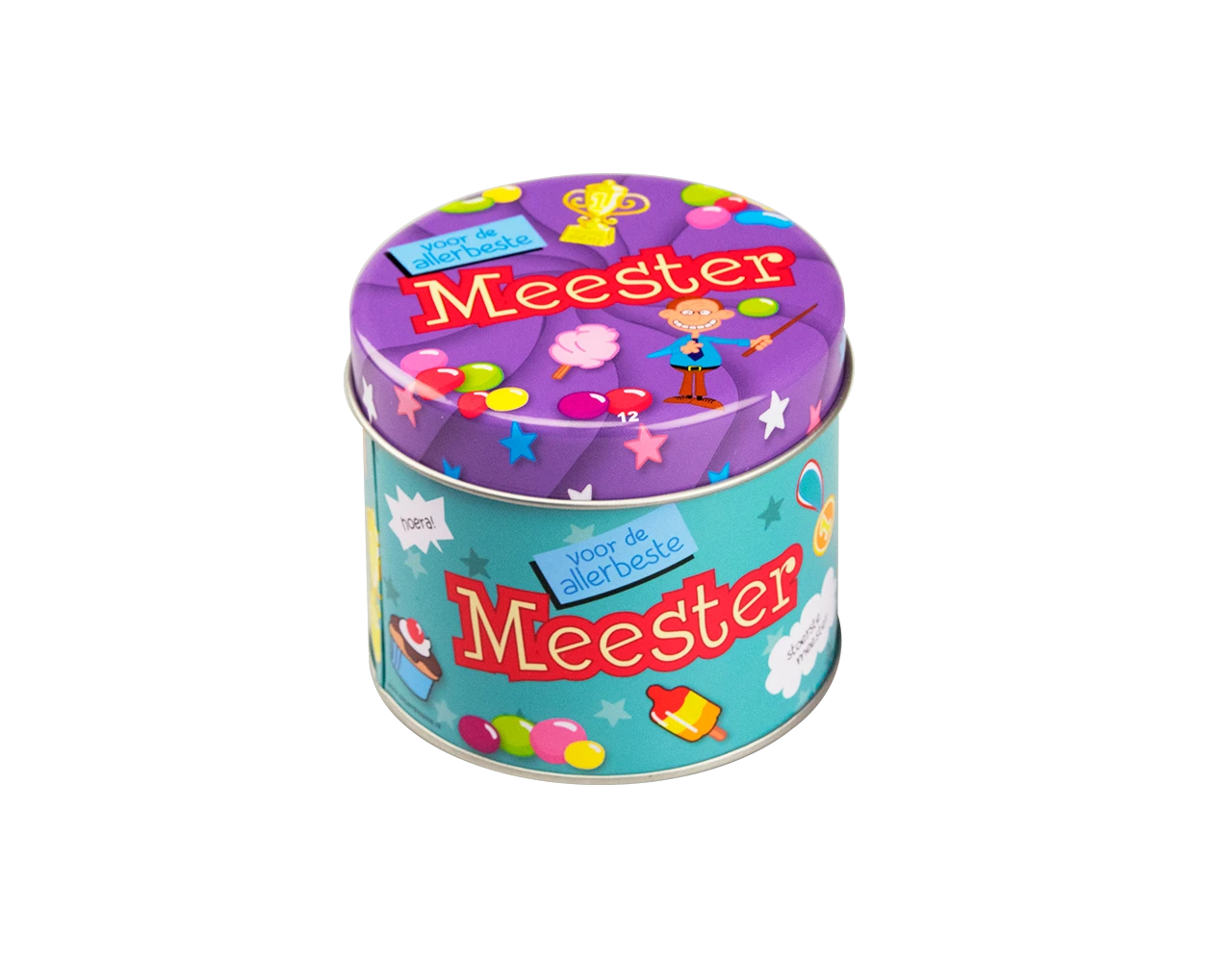 Verpakkingsinhoud: Snoepblik Meester 9cm